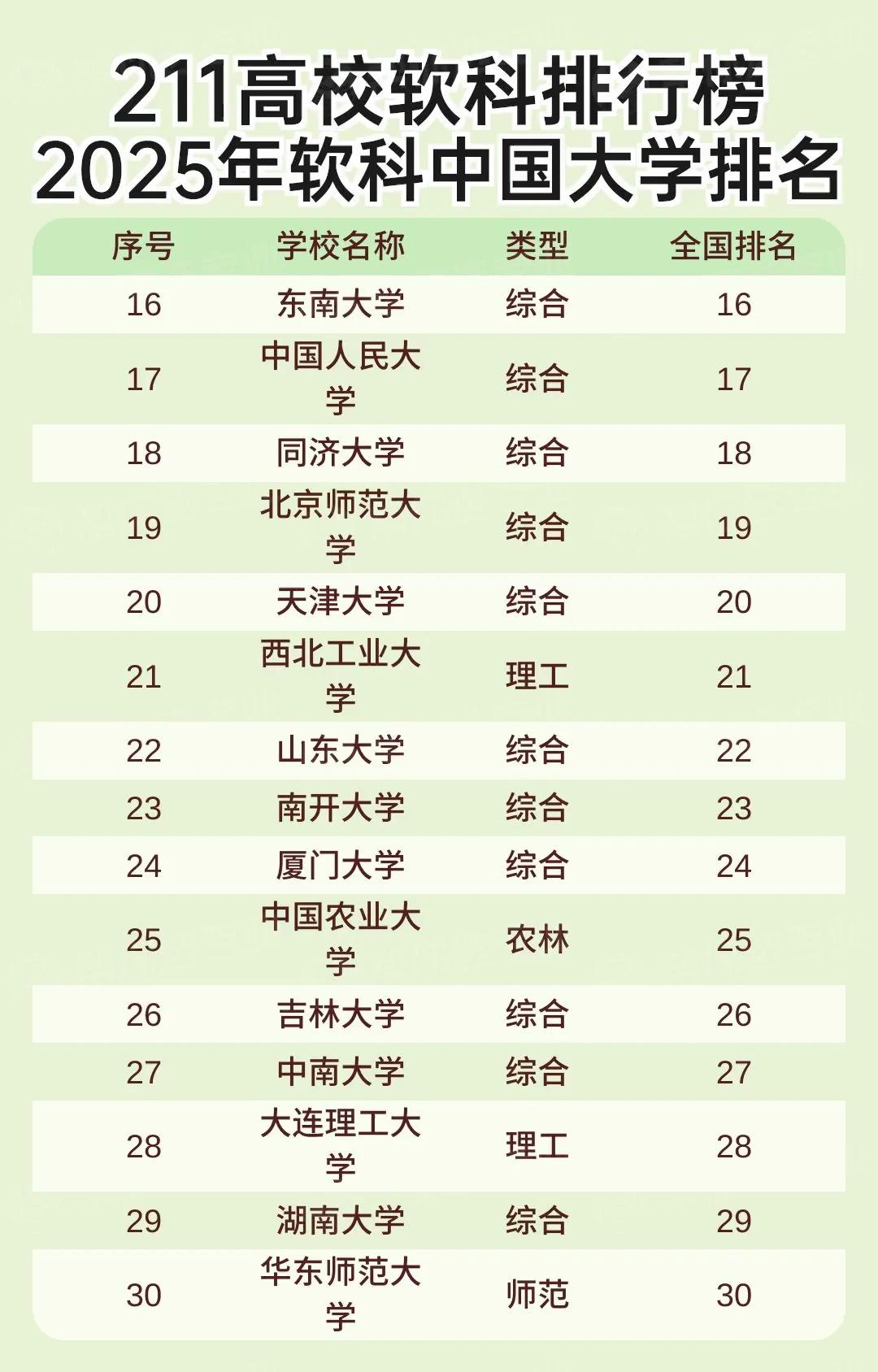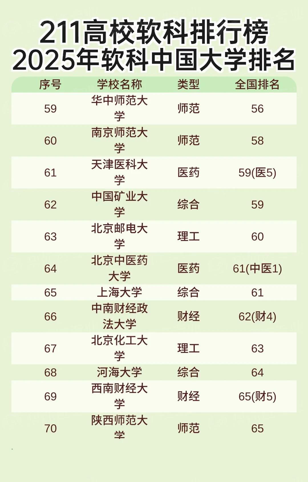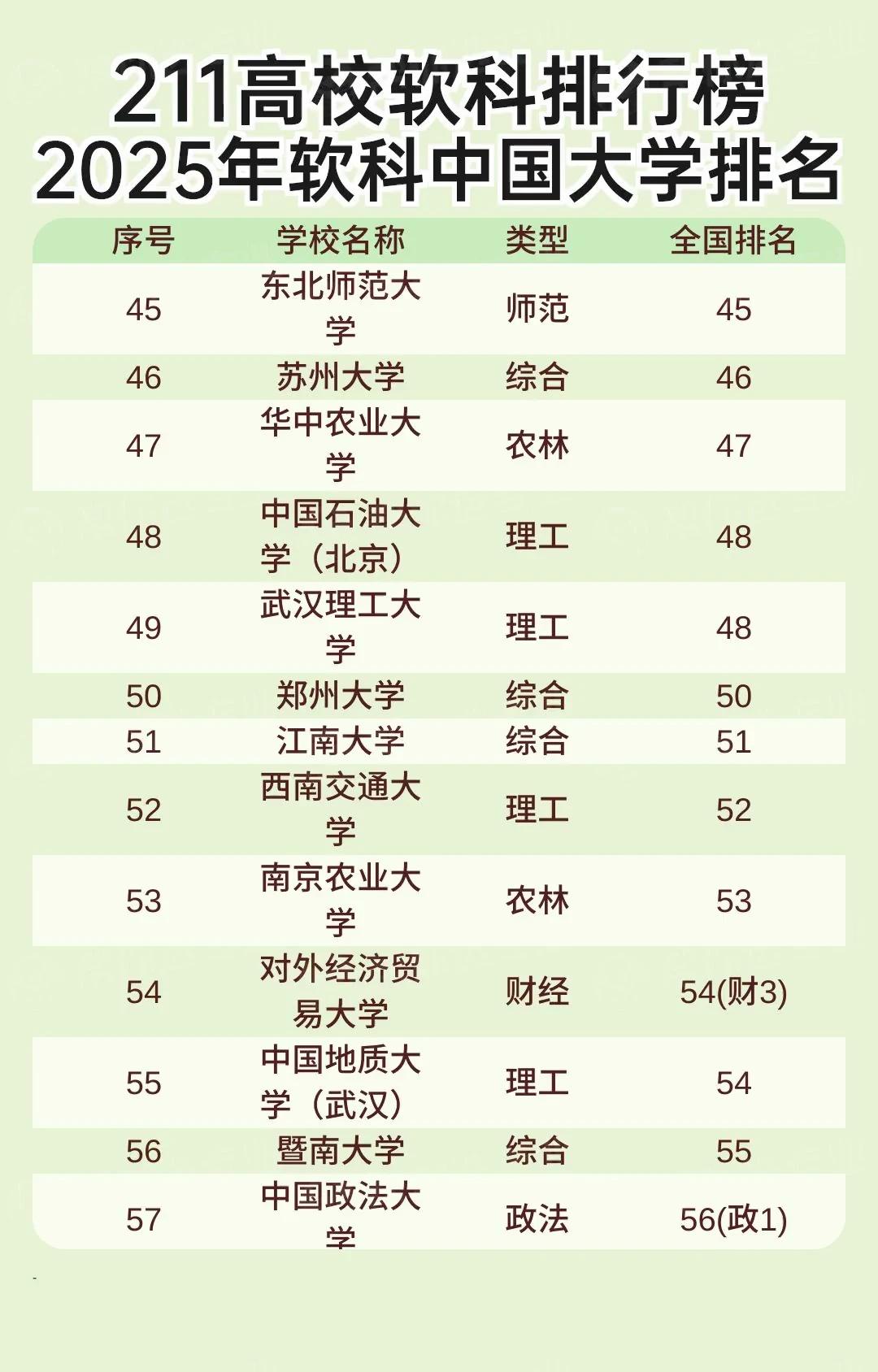 211高校软科排行榜 114所211高校排行榜 高考 考试 志愿 大学 本科 985 211 双一流 清华大学