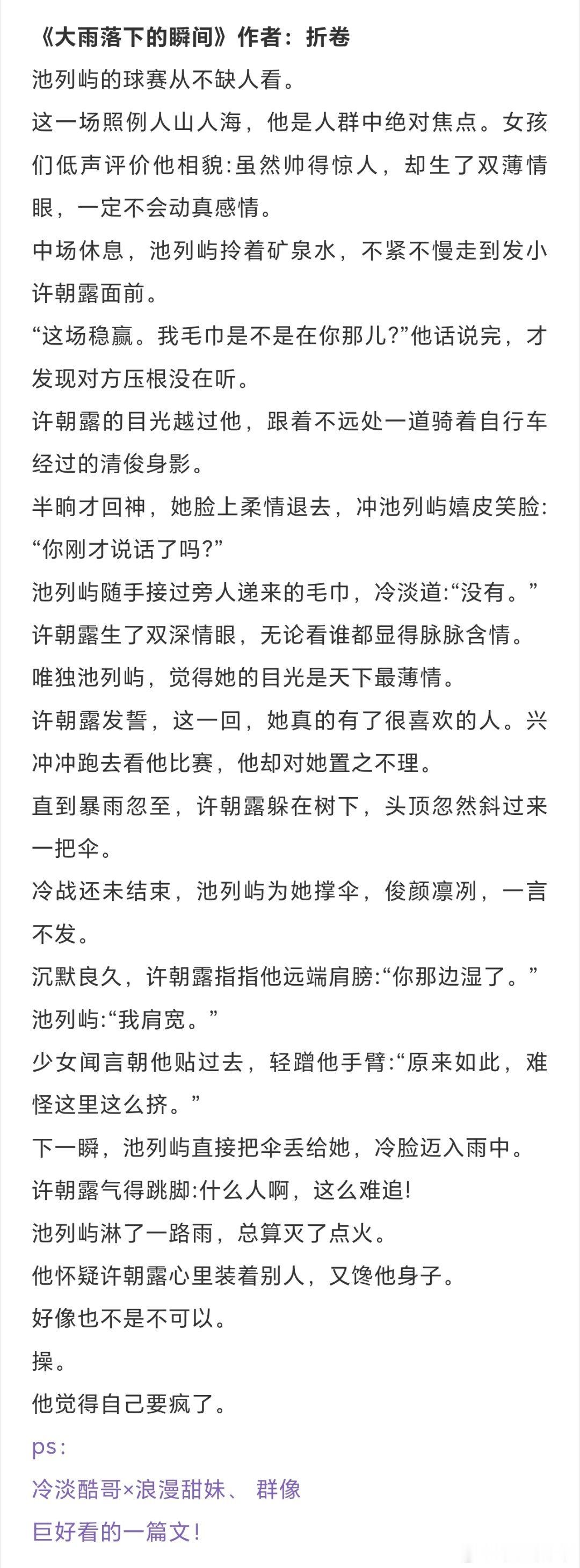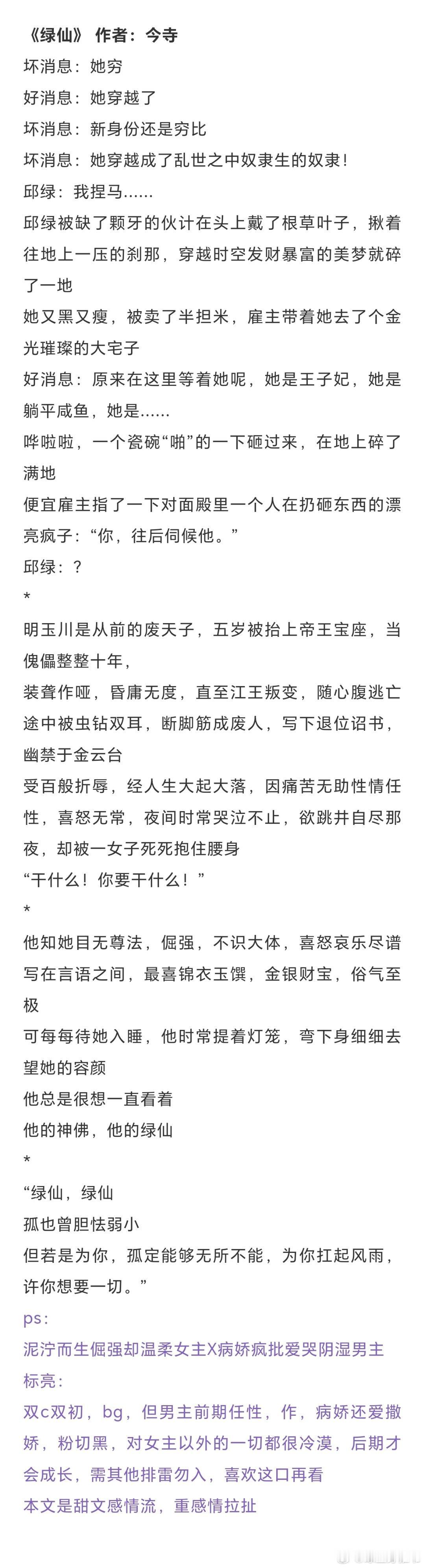 周末了,推荐十本超好嗑的文,姐妹们看点甜的开心下吧!现言:《春夜困渡》作者:晏执《循环热恋》作者:礼也《我把霸总吵癫了》作者:赵史觉《大雨落下的瞬间》作者:折卷《视线回避是心动的开始》作者:柚子多肉古言:《开国皇帝的小公主》作者:笑佳人《反派剧透我一脸》作者:青花燃《和宿敌中了情蛊后》作者:衔香《绿仙》 作者:今寺《道姑小王妃》作者:小舟遥遥