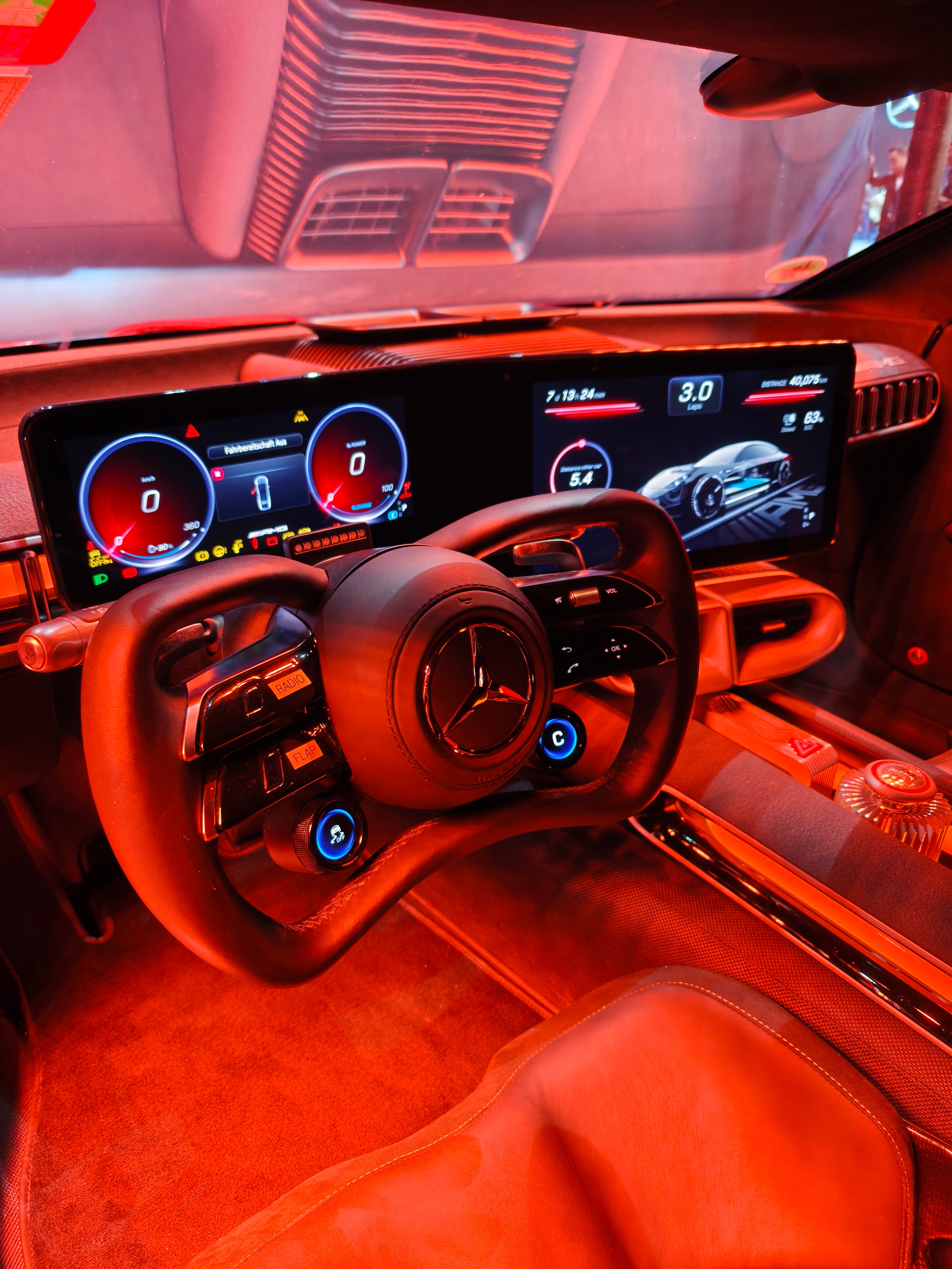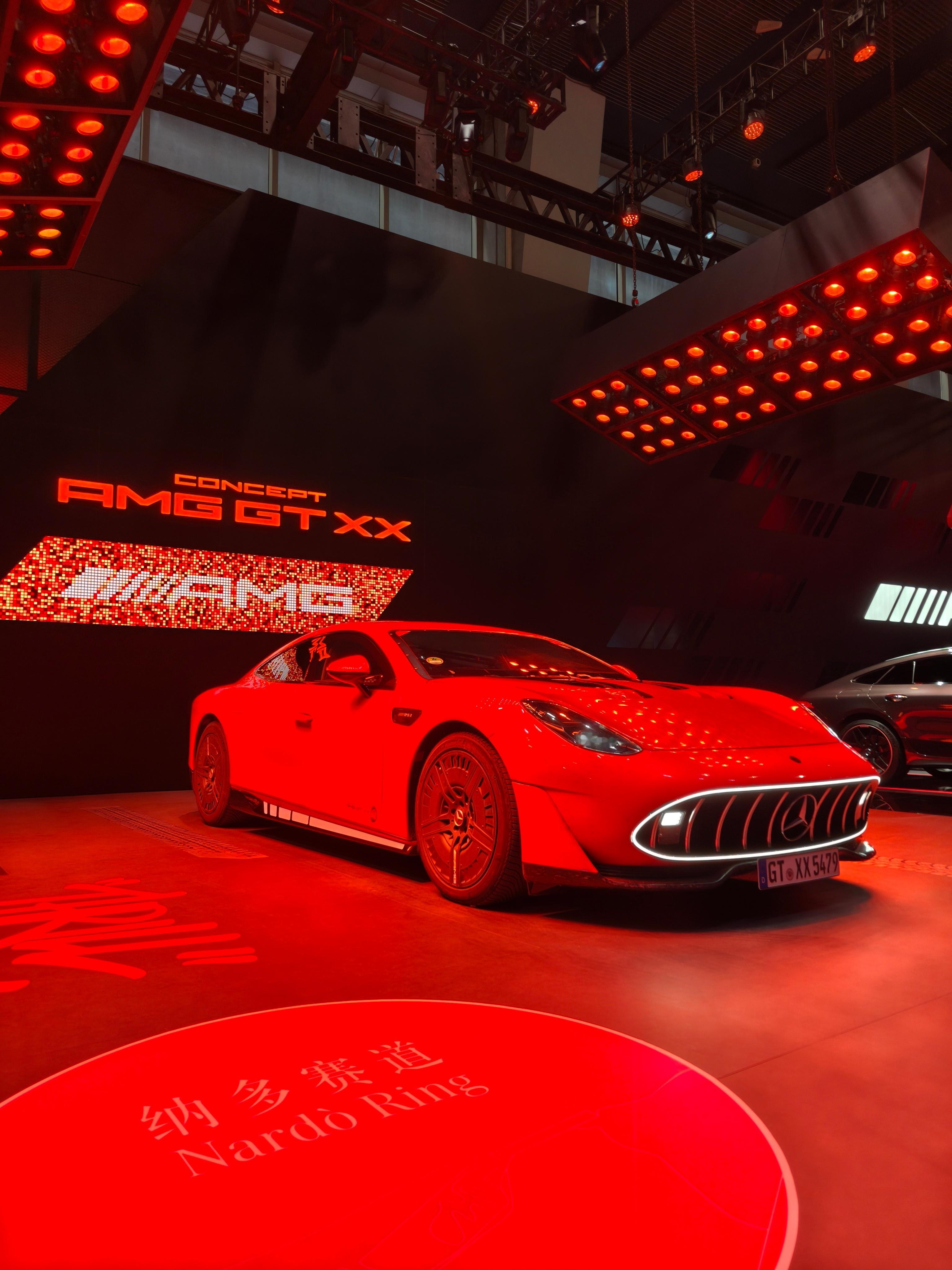 昨天在2025奔驰科技创新日上好好学习了下什么叫轴向磁通电机,会用在纯电AMG上。今天展台近看了AMG GT XX概念车,很帅,特别是内饰!分享三个点:1. 会用上F1同源驱动科技,轴向磁通电机加电芯直冷,性能和耐久都靠谱;2. 800伏架构,5分钟就能补400公里WLTP续航,补能焦虑少了好多;3. 可变叶片轮毂+等离子激励器,空气动力学设计,它的叶片会自动打开或关闭。(图10)。赛道科技慢慢用到公路上,电动超跑的乐趣越来越足,期待2026年量产实测!
