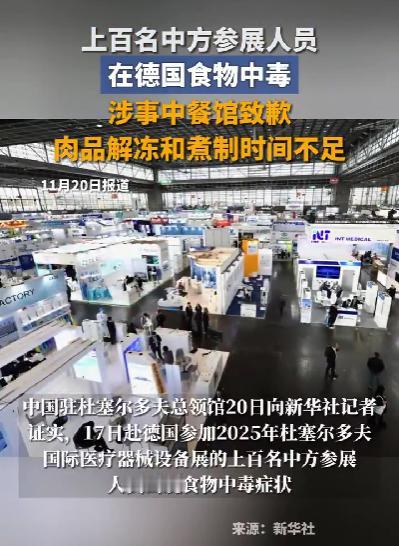 这真的只是一场简单的“食物中毒”吗?细思极恐! 德国杜塞尔多夫,全球医疗器械的设备展上,咱们中国去了1300多家高精尖企业,本来是去突围欧盟贸易壁垒的。结果呢?开展第一天,上百名中国参展精英就在餐桌上被“放倒”了。 官方通报说是当地中餐馆“肉没煮熟”,但翻了翻外网和各大论坛的评论,也不乏有些别的声音。要知道,最近中欧在电动车关税、医疗器械采购上的博弈正处于“白热化”阶段。前脚欧盟刚对咱们举起“大棒”,后脚咱们的参展团就在德国集体中招? 有网友算了一笔账:这100多人倒下,意味着上百个展位空置,数以亿计的潜在订单可能因此流失,甚至连原本安排好的核心技术发布会都得取消。这不仅仅是拉肚子,这是直接让中国企业在关键时刻“失声”!如果这真的是一场商战手段,那确实有些细思极恐了! 当然,可能大多数人还是认为该事件大概率是因为那个收了20欧一份盒饭的无良老板想赚快钱,用了劣质食材。但在这个敏感的时间节点,发生这种“精准打击”中国团的事,怎么能不让人多想? 不管是不是阴谋,这事也是一个很好的提醒,以后咱们的技术人员、科研人员,尤其那些最顶尖的,出国参加交流、会议、展览一类的活动,最好全方面加小心,毕竟现在的国际环境日益复杂,对一些重要人员的安全防线,必须武装到牙齿,哪怕是一口饭,也不能掉以轻心!
