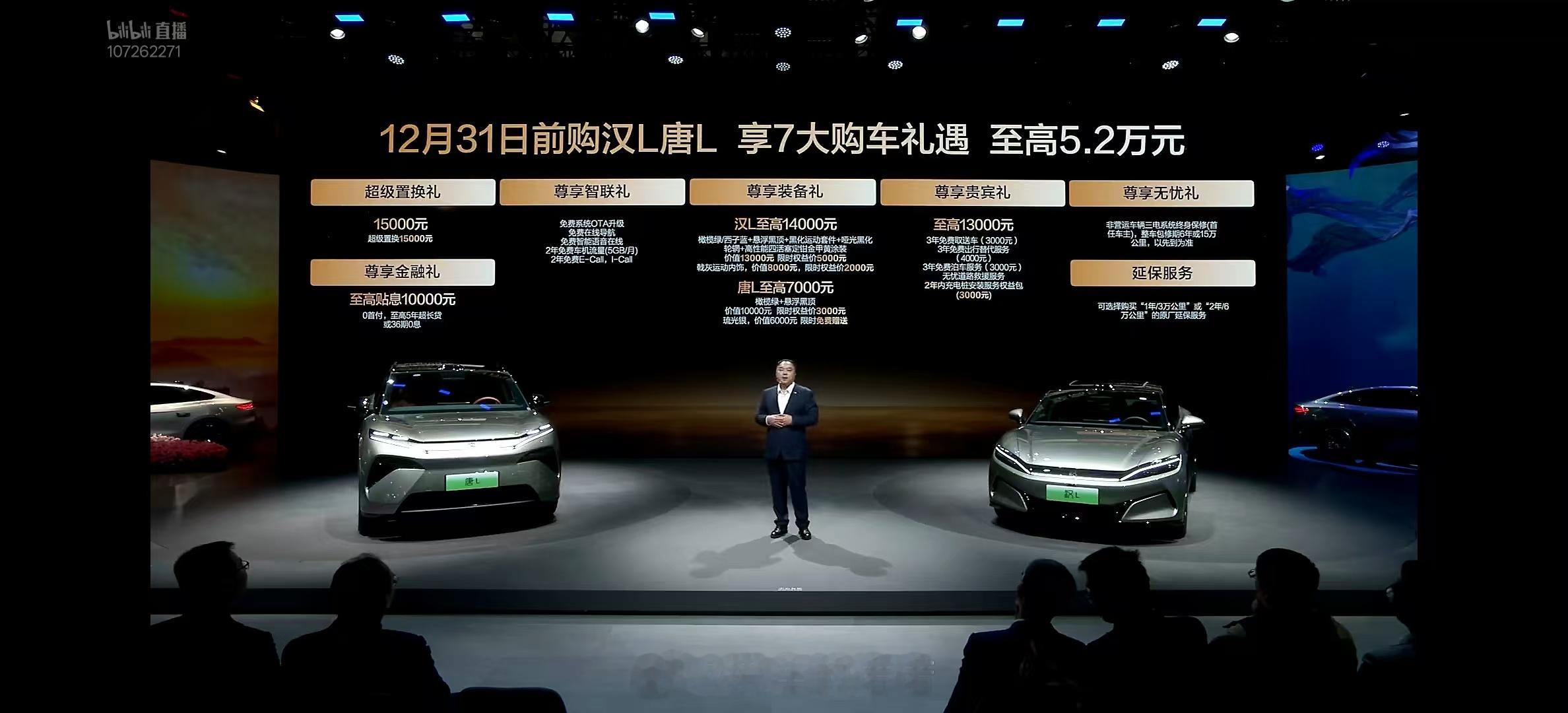 这次广州车展上,除了比亚迪唐L汉L的智能三大核心进阶以外,还带来了让人眼前一亮的全新车色。设计层面,唐L和汉L依旧采用Loong Face龙颜美学设计语言,将国人血脉中的高级审美升华,既年轻又运动,对个性化的进阶追求此刻被充分满足。两车共同推出的橄榄绿全新车色,采用了低饱和度、高反射的金属漆,纳米级高透色浆,按照精密配比,混合微米级超细铝粉,所以你肉眼观察可以发现它带有绿中透金的渐变,阳光下能够更加清新明亮,在室内光线呈现的墨绿,则显得更加深邃,从车色的研发,不仅能窥见当代都市精英,将活力蕴藏于静谧之中的生活态度,也展现了将现代工艺,完美与东方美学交融的过程。汉L则独家推出了采用巴斯夫珠光包覆滤粉的西子蓝创新车色,阳光下饱和度更高,能呈现珠光金属白的视觉效果,弱光时则能够呈现出视觉感受更舒适的低饱和度清澈碧蓝,看上一眼,西湖淡妆浓抹总相宜的诗意美感便呼之欲出,除了极富想法的车身色以外,汉L这次还专门为追求个性的用户,提供了黑化运动套件。黑化窗沿饰条、悬浮黑顶、戟灰运动内饰,再次将战斗气息拉满,展现了浓厚的运动氛围。而在汉L上人气相当高的的流光银,这次也作为全新选项提供给了唐L。唐L汉L还在购车政策和选装权益上给人惊喜。例如汉L原价1.3万元的外观套件,包含两款车色、悬浮黑顶、黑化套件、亚光黑轮辋、四活塞的金甲黄涂装,在限时权益期间仅需5000元,唐L的两款价值1万元的橄榄绿/悬浮黑顶,限时权益仅需3000元。价值6000圆的流光银车色更是限时免费赠送。同时,现在订购两款车型还能享受1.5万元的置换礼遇。这些权益,都截至12月31日前。