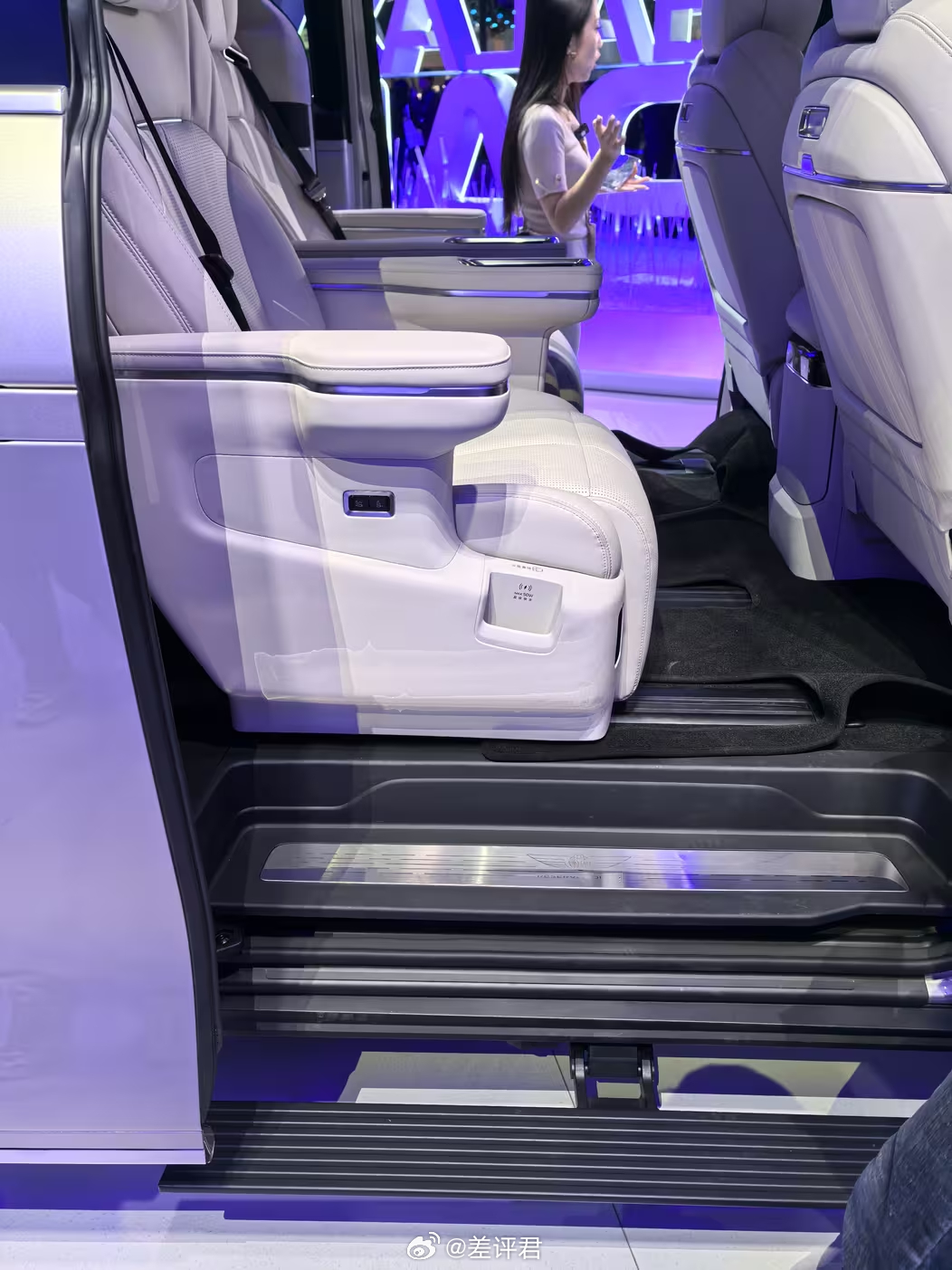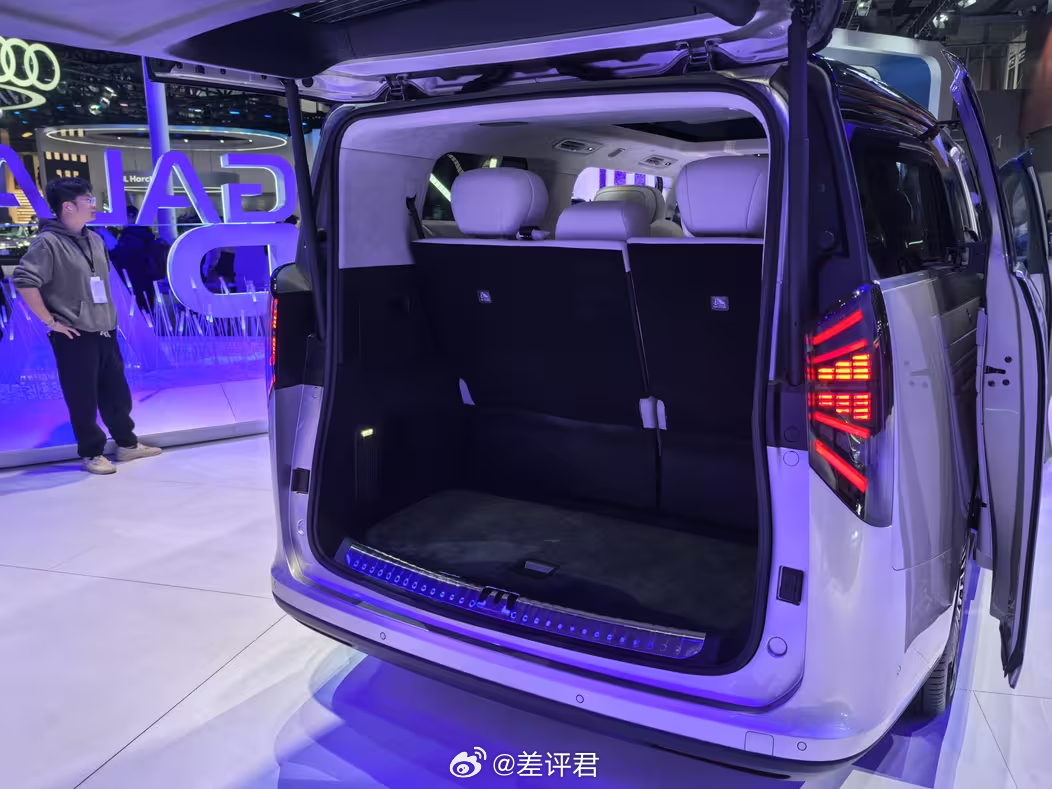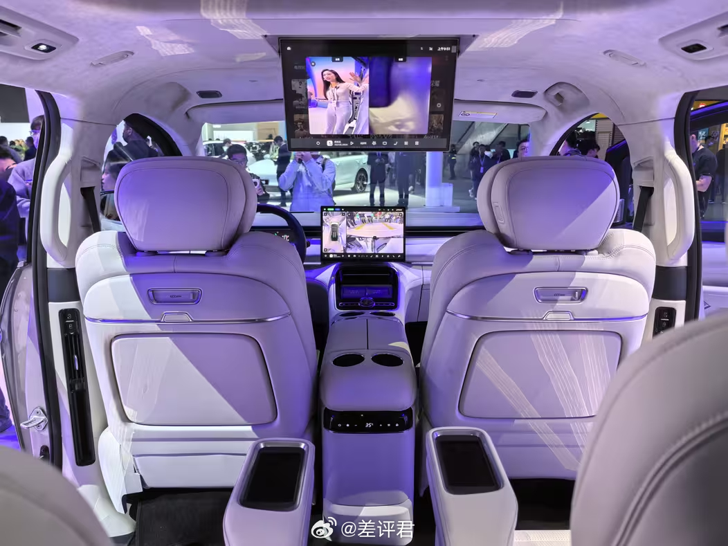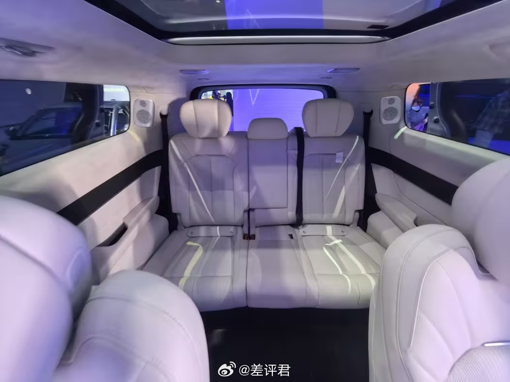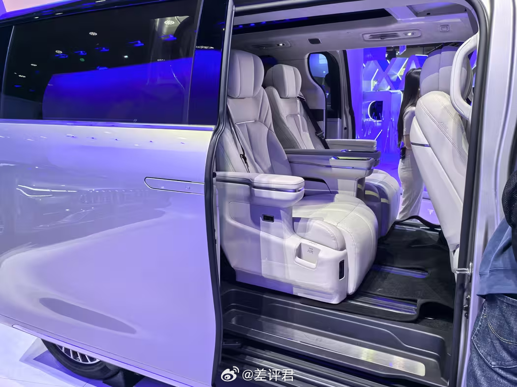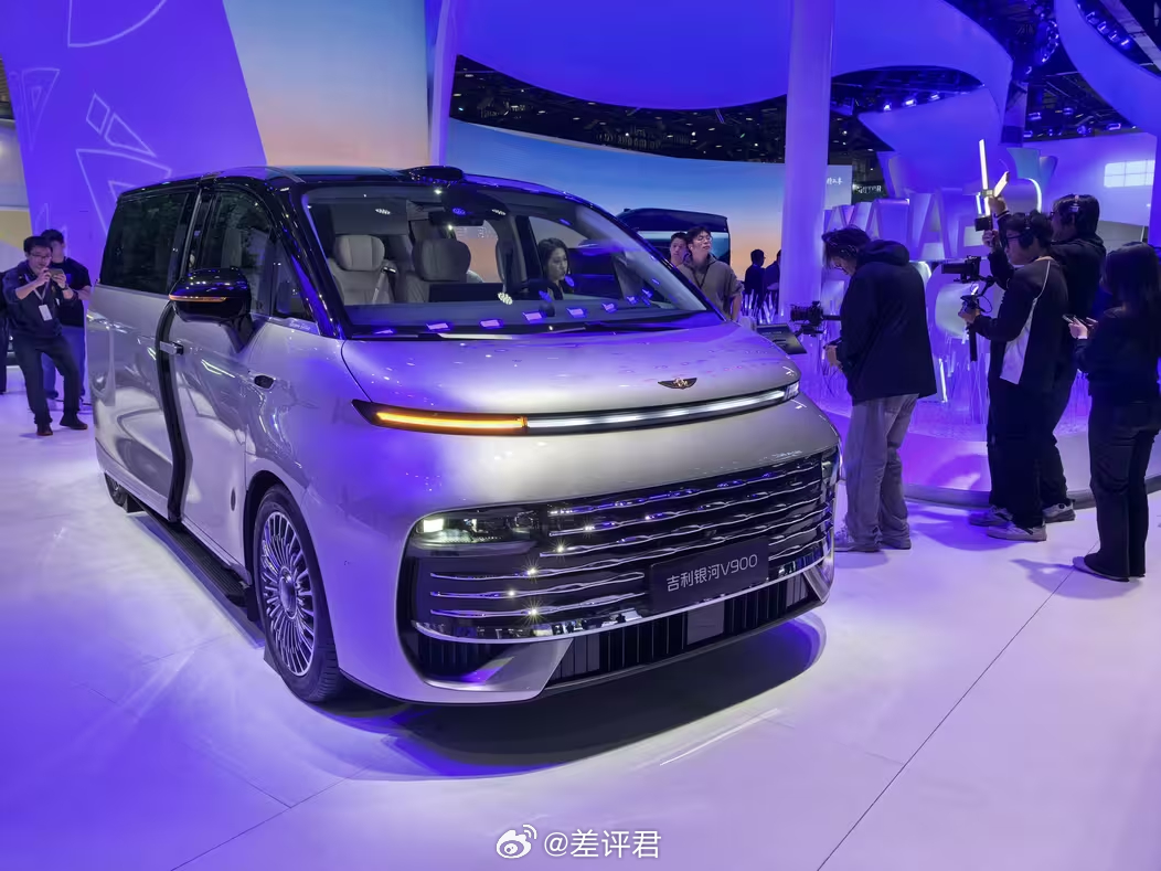 具体来说说广州车展新鲜出炉的车。 全球首秀的银河V900,主打卖点就是一个字——大。在第二排默认位置下,第三排还有一个小臂的膝部空间余量,三排座的空间体验几乎没有区别,并且坐垫的长度也给得很地道。此外豪华配置,像是通风、按摩、加热、冰箱、电视,都配齐了。当然,不少朋友们应该看出来这车和银河翼真L380的相似度了。这也是吉利系品牌和车系整合的一个缩影 既提升了V900的知名度,也能帮上升期的银河品牌做大。
