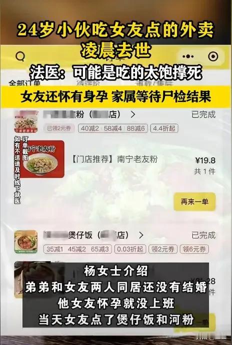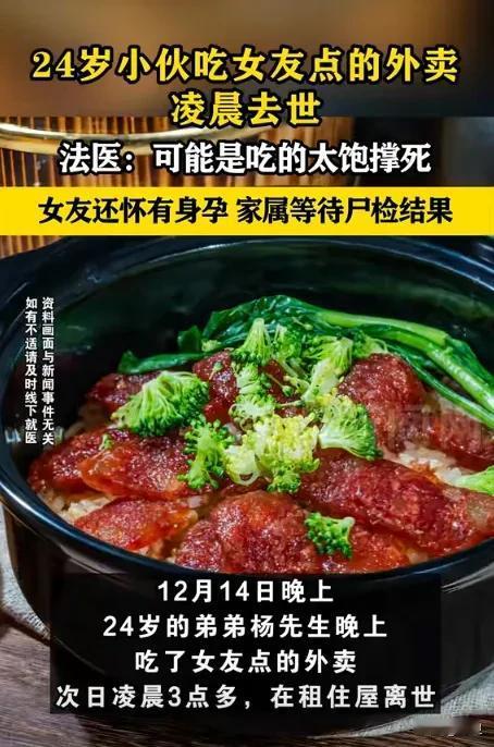 外卖,饱腹,还有生命的脆弱!今天中午吃饭的时候,我习惯性地刷了一下手机新闻,结果看到一则消息,真的把我吓得够呛。一个24岁的年轻小伙子,在吃了外卖后,竟然在凌晨突然离世。这小伙子吃的是煲仔饭和南宁老友粉。说实话,这些都是很多人平时也会点的外卖。 看电影《我不是药神》的时候, 看到一位年轻的白血病患者走了,当时真的哭的稀里哗啦的, 今天看到这则新闻, 再次觉得生命的脆弱, 真的是经不起一点点的摧残。我也替他的女朋友和家人感到悲痛,尤其女朋友还怀着身孕,相信这个意外,对她来说一定是毁灭性的打击。 自己以前也有那些不健康的饮食习惯:心情不好,点一堆高油高糖的外卖;工作压力大,暴饮暴食,恨不得把自己撑到肚皮爆炸。 有时候真的太忙了,吃饭这件事,好像只是为了完成任务一样, 随意的扒拉几口就算了事。 我记得有次为了赶项目,经常会连续几天熬夜加班。最忙的时候,我基本上是中午随便吃几口,晚上直接点个大份外卖,狼吞虎咽地吃完,然后继续埋头工作。有时候吃的太快,吃到肚皮都撑得疼,就靠躺一会儿缓解。 有时候直接撑到胃酸都从喉咙口涌出来,感觉自己的整个消化系统都要崩溃了, 仍然不忘把剩菜打包,心想不能浪费,第二天再吃, 似乎食物只是机械性的“塞到肚子里”就好。我现在想想, 真的是太不爱惜自己的身体了! 那段时间,我整个人的状态都很差,脸色蜡黄,经常感觉疲惫,失眠。 虽然外卖为我们带来了很多便利,但我还是想说,外卖真的不能随便吃!尤其是深夜外卖,一定要控制一下自己的食量,细嚼慢咽,千万不要暴饮暴食,也尽量选择一些清淡,营养均衡的食物。 如果说工作很忙, 我觉得也一定要给自己安排一些健康饮食和运动时间,让自己的身心得到放松。 千万不要等到身体出现问题,才后悔莫及, 这样的事情,我想谁都不想经历, 或者发生在我们自己和我们身边人的身上。 改变一些不良的饮食习惯。千万不要把吃饭当成完成任务,也不要用食物来填补内心的空虚。吃饭的意义,应该是让我们更好的生活,而不是缩短自己的生命。