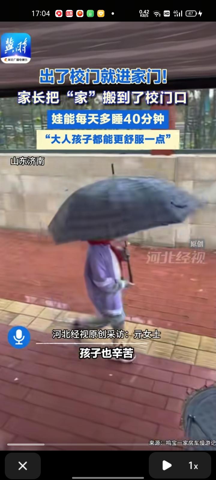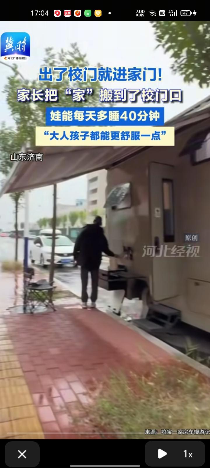 近日,山东济南。出了校门就进家门,天气寒冷又下雨,家长开房车到学校侧门,作为“移动学区房”,孩子能多睡40分钟,上下学都是孩子一人搞定,家长有时间去工作买菜,很舒心。