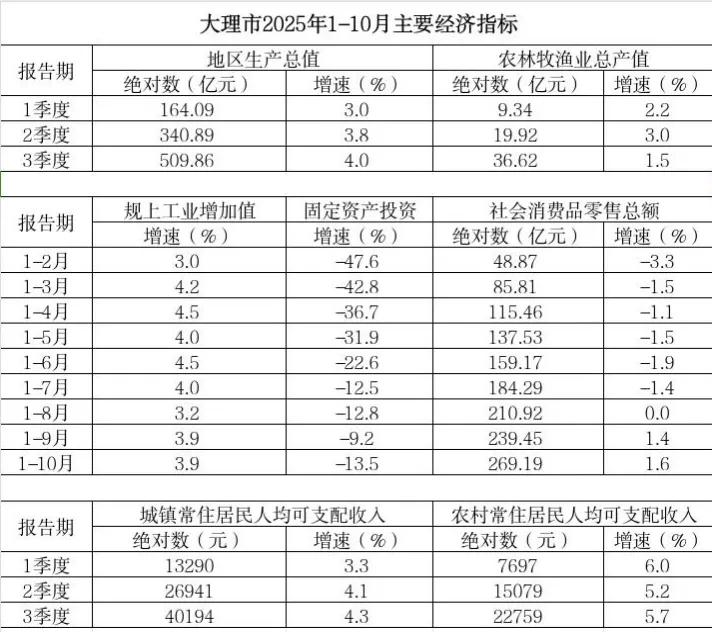 从数据看大理经济:工业生产持续回暖,固定资产投资下滑需警惕。 大理市2025年1-10月主要经济指标完成情况: ·工业:1-10月全市规模以上工业总产值完成228.82亿元,同比增长6.23%。全市规模以上工业增加值增长3.9%。 ·投资:1-10月全市固定资产投资下降13.5%,其中城镇投资同比下降9.8%,房地产投资同比下降21.6%。 ·贸易:1-10月全市社会消费品零售总额完成269.19亿元,同比增长1.6%。