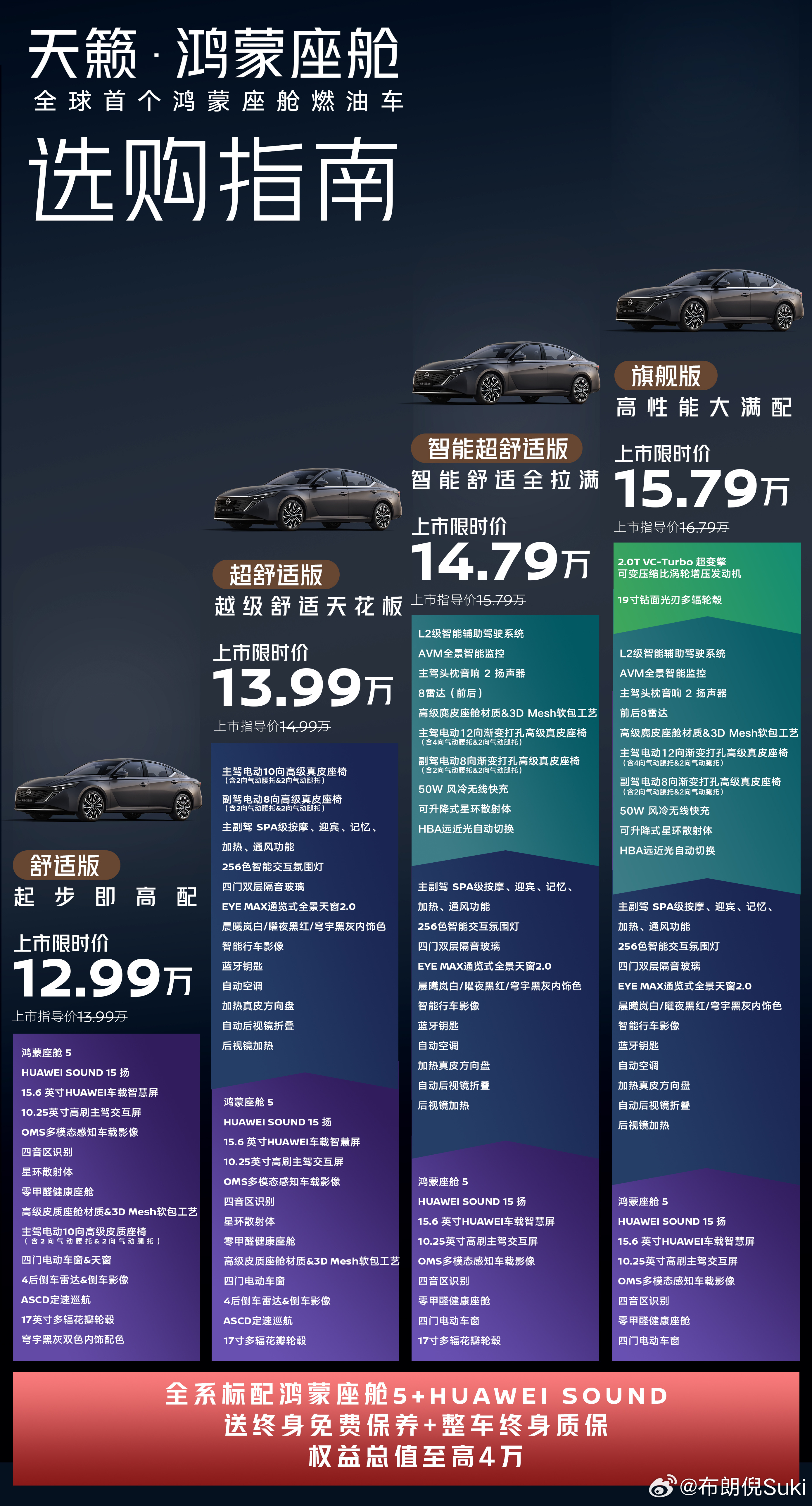 你有没有想过,燃油车的座舱有一天也能跟新势力一个水平。这个愿望,在2025年的年底被天籁·鸿蒙座舱实现了。作为全球首个搭载鸿蒙座舱的燃油车,天籁从底层与华为鸿蒙生态深度融合,搭载满血鸿蒙座舱5,是目前最新一代的鸿蒙座舱,这东西就算在目前的新势力车型上也是个响当当的配置了,体验自然不用我多说,丝滑、聪明而且高效,手机车机无缝流转,就是现在旗舰级手机的体验。最重要的是,鸿蒙座舱5在天籁上,全系标配!无需为智能体验选装,科技平权的魅力在此刻被展现的淋漓尽致~