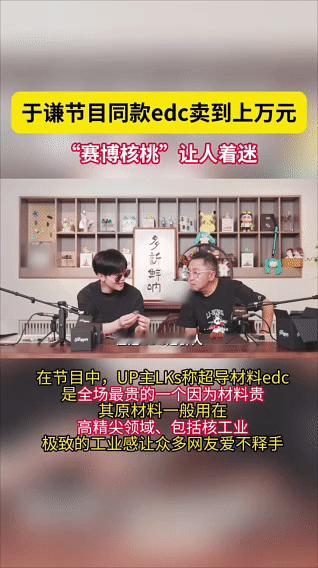 宝子们,谁懂啊!于谦老师同款edc标价直接上万,瞬间瞳孔地震,这可不是普通小物件。比如那个带特殊纹路的,用的是低温超导材料,原本在核工业、高精尖领域才用得上,就因为EDC圈子里追求极致工业感,硬是把这“硬核”材质搬到了随身小物上。这份对材质和工艺的偏执,懂的人自然会为这份“极致”买单~