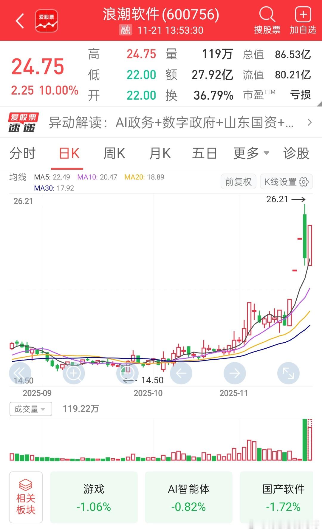 浪潮软件这一波起来太猛了,AI应用最近属实是牛阿,三连板上来后昨天调整,今天又是
