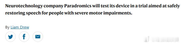 脑机接口:新植入设备开启临床,让失语者重获“声音”!当地时间11月20日,神经科技公司Paradromics宣布,其研发的一款脑机接口(BCI)设备已获美国FDA批准进入长期临床试验,旨在帮助因神经系统疾病或损伤而丧失言语能力的患者恢复实时交流能力。这家公司被视为是马斯克旗下脑机接口公司Neuralink的有力竞争者。该试验计划首批将为两名严重运动障碍患者植入设备,试验首要目标是验证设备的安全性,同时致力于重建患者通过想象说话生成文本或语音的能力。Paradromics首席执行官马特·安吉尔表示:“将这一新硬件推向临床,我们倍感振奋。对许多患者而言,恢复沟通是BCI技术能带来的最大生活质量提升。”据介绍,该植入系统核心为一个直径约7.5毫米的电极阵列,由铂铱材料制成,可深入大脑皮层约1.5毫米,精准捕捉单个神经元的信号。这些信号通过导线传输至植入胸部的电源及无线收发器。在试验中,电极将被置于控制唇、舌、声带的运动皮层区域。当参与者想象说出屏幕上显示的句子时,系统将学习其神经活动模式与语音音素之间的对应关系,进而转化为文本或基于患者旧录音合成的语音。这也是全球首个正式针对语音合成功能的BCI临床试验。此外,试验还将探索设备是否能通过检测想象的手部运动,帮助患者操控计算机光标。安吉尔透露,若初步结果理想,试验规模将扩大至10名志愿者,部分人可能接受双皮层植入以增强信号采集。随着Paradromics加入长期临床赛道,脑机接口领域的竞争日趋激烈。除其与Neuralink所代表的皮层内电极技术路线外,纽约公司Synchron开发的血管内支架式设备Stentrode也在推进试验,通过血管壁记录神经信号。Neuralink则凭借其高带宽、多电极线程系统,在信号传输速度上屡创新纪录。业内专家对此进展表示高度关注。荷兰乌得勒支大学医学中心研究员玛丽斯卡·范斯蒂恩塞尔指出:“完全可植入的系统是推动BCI走向临床的关键。”她同时呼吁企业保持数据透明,并期待未来设备能向学术界开放,以促进独立研究。随着多项试验同步推进,脑机接口技术正加速从实验室迈向现实应用。