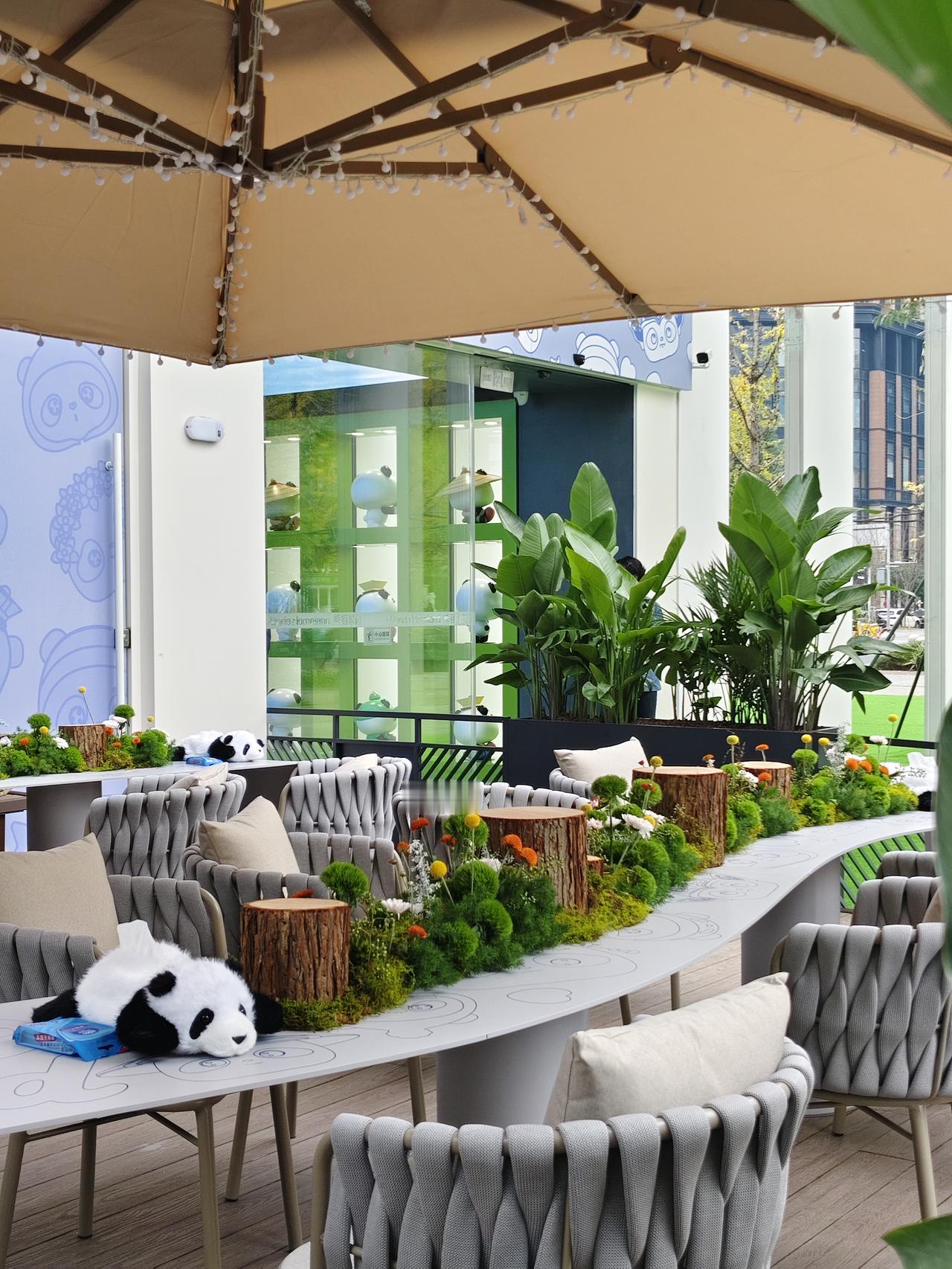 救命!成都人就要被滚滚包围了! 今天刚好在交子大道附近, 想去抢先体验一下熊猫家园的首家旗舰店。 划重点, 明天开业!明天开业!! 想去的朋友今天别跑空了。 但是外面也已经很好看了, 别说外国朋友喜欢, 地道四川人也很难不爱啊! 特别喜欢外摆区域, 出个太阳, 一杯咖啡在手☕ 旁边趴着可爱的滚滚, 心都要化了! 成都因你更新