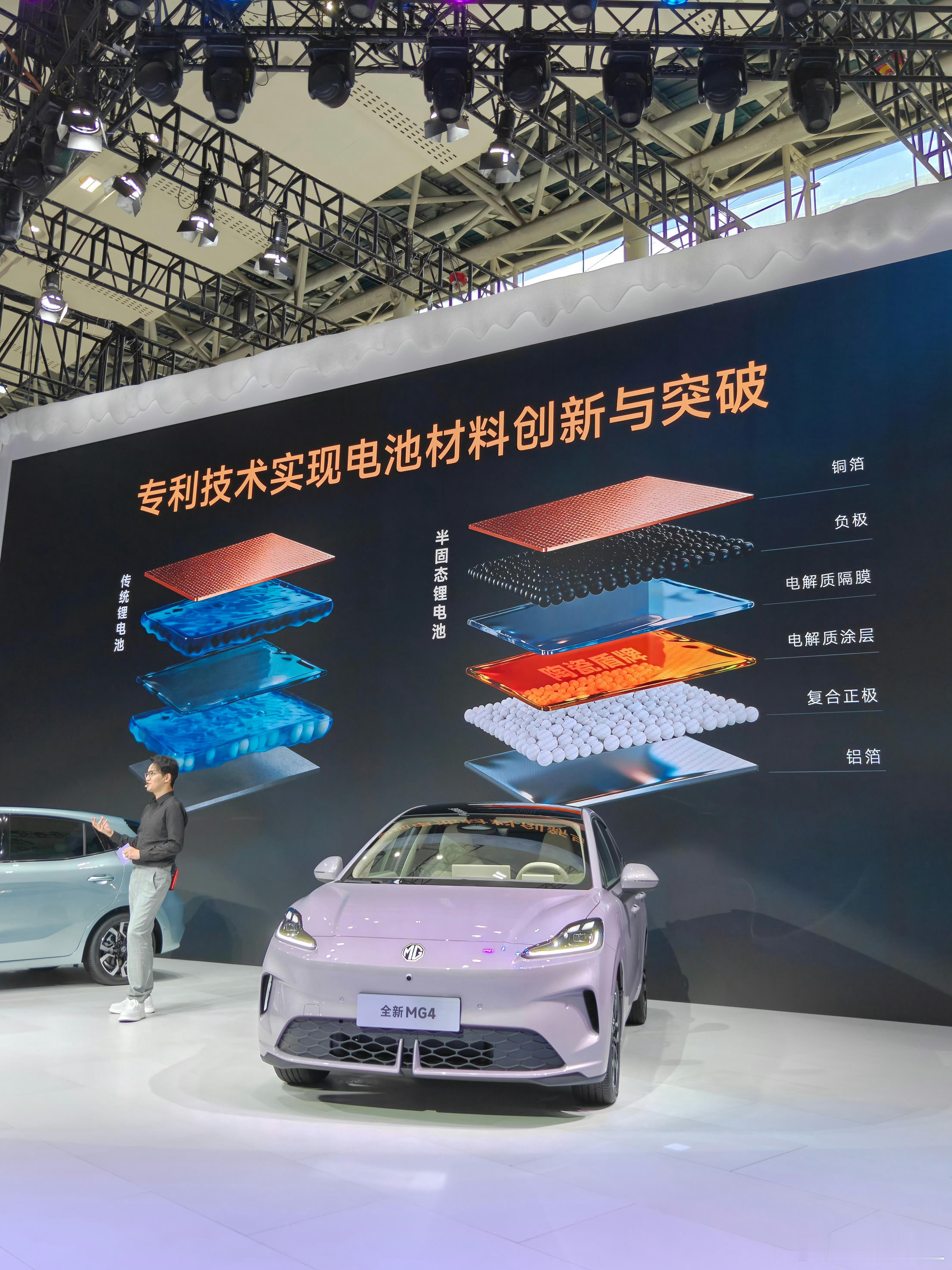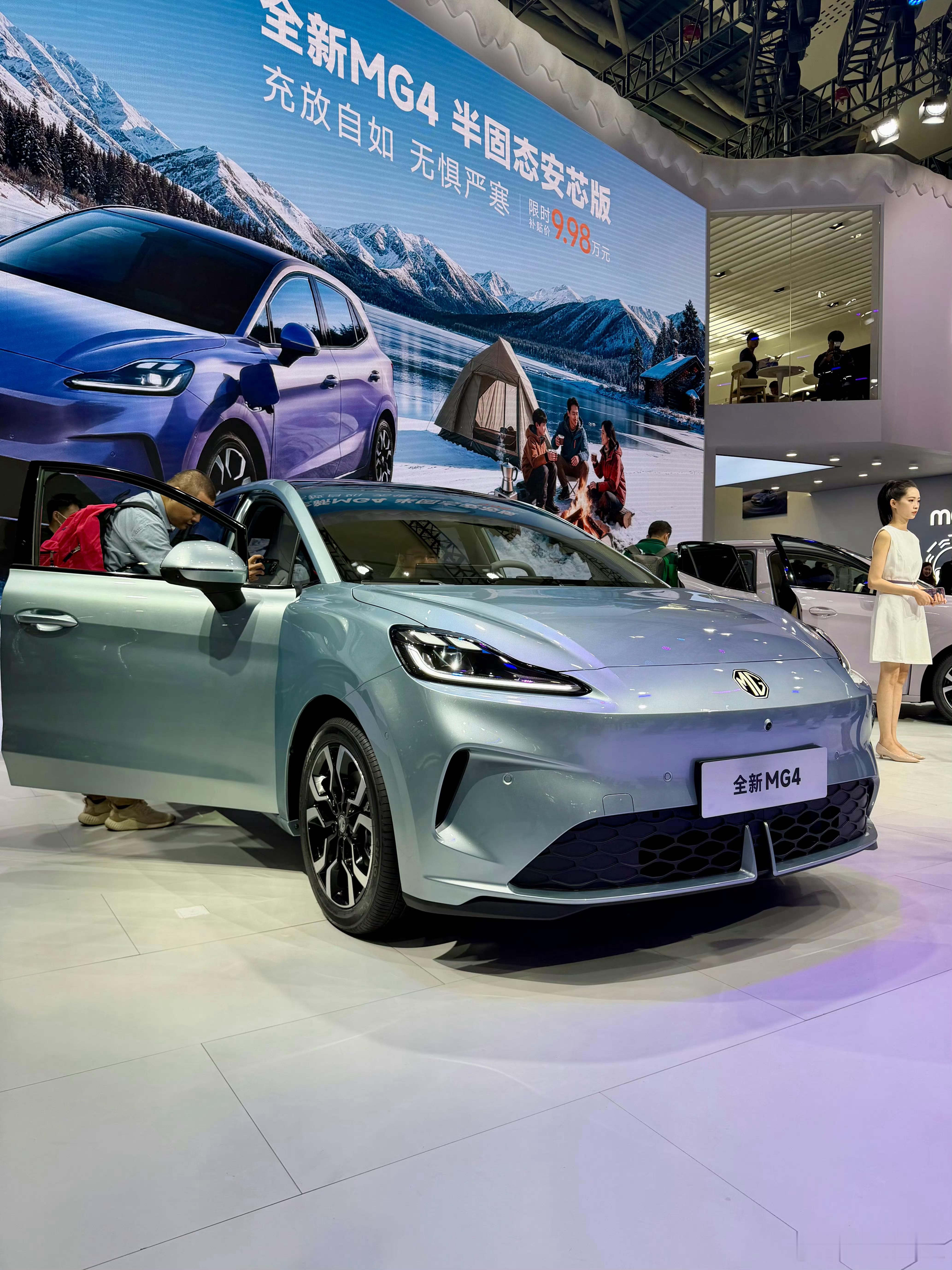 今天车展看到MG4新出的半固态电池版,挺有意思。电池安全性不错,听说穿刺测试不起火。续航530公里,快充20分钟能跑大半程,冬天-35℃也能用。价格9.98万,12月交车。