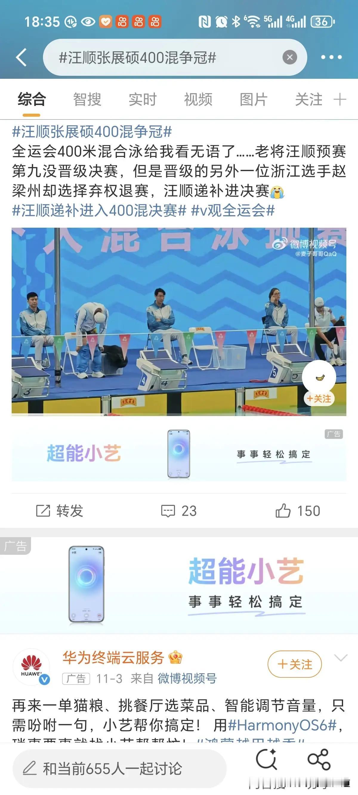 真的假的?浙江游泳队还能这样操作?大家以为汪顺要和张展硕争夺全运会男子400混合泳冠军,结果一哥汪顺没进决赛排了第九。然后进决赛的队友赵梁州却退赛了,汪顺自然顺位进决赛。这下压力来了,他要不夺个牌子,汪顺是不是都对不起队友哇!奖金得分一半。 万万没想到张展硕最后退赛了,早知道这样浙江不动,决赛就有三个浙江人了。 规矩允许,没问题。昨天体操的吊环比赛也这样,一名同省的队员退了,预赛没比好的队友上了。 上个世纪94年罗马世界游泳锦标赛女子200米自由泳,德国的阿尔姆西克第九,队友第八名退赛,她参加决赛得第一!中国第二。 理性看待全运会!全运会就是全国选手大练兵,旨在了解全国的运动水平,互相学习,共同进步! 赵梁州即使不退赛,张展硕也要退赛,汪顺总是可以递补进决赛。 这种安排简直令人发指,先1500米,接着就是400米混,这不是逼着张展硕退赛吗?组委会乱弹琴! 浙江队友退赛胖汪顺晋级,张展硕退赛保汪顺金牌,游泳池果然水很深啊[捂脸][捂脸]。