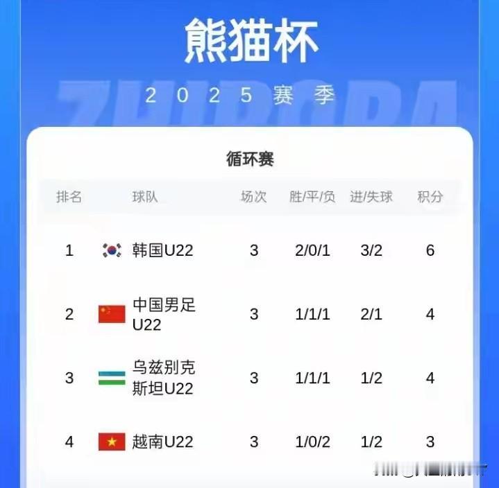 熊猫杯落下帷幕,在刚刚结束的比赛中,中国国青队与乌兹别克斯坦队0-0战平。 若今晚能击败乌兹别克斯坦队,中国国青队便有望夺得熊猫杯冠军。然而,后卫王士钦情绪失控,被红牌罚下,致使全队不得不以少打多,最终与熊猫杯再度失之交臂。韩国队再次捧起熊猫杯🏆,中国国青队以第二名的成绩结束了此次赛事。就把这当作一次练兵吧,还是要多参加比赛,提升球队的大赛经验与场上战术素养。