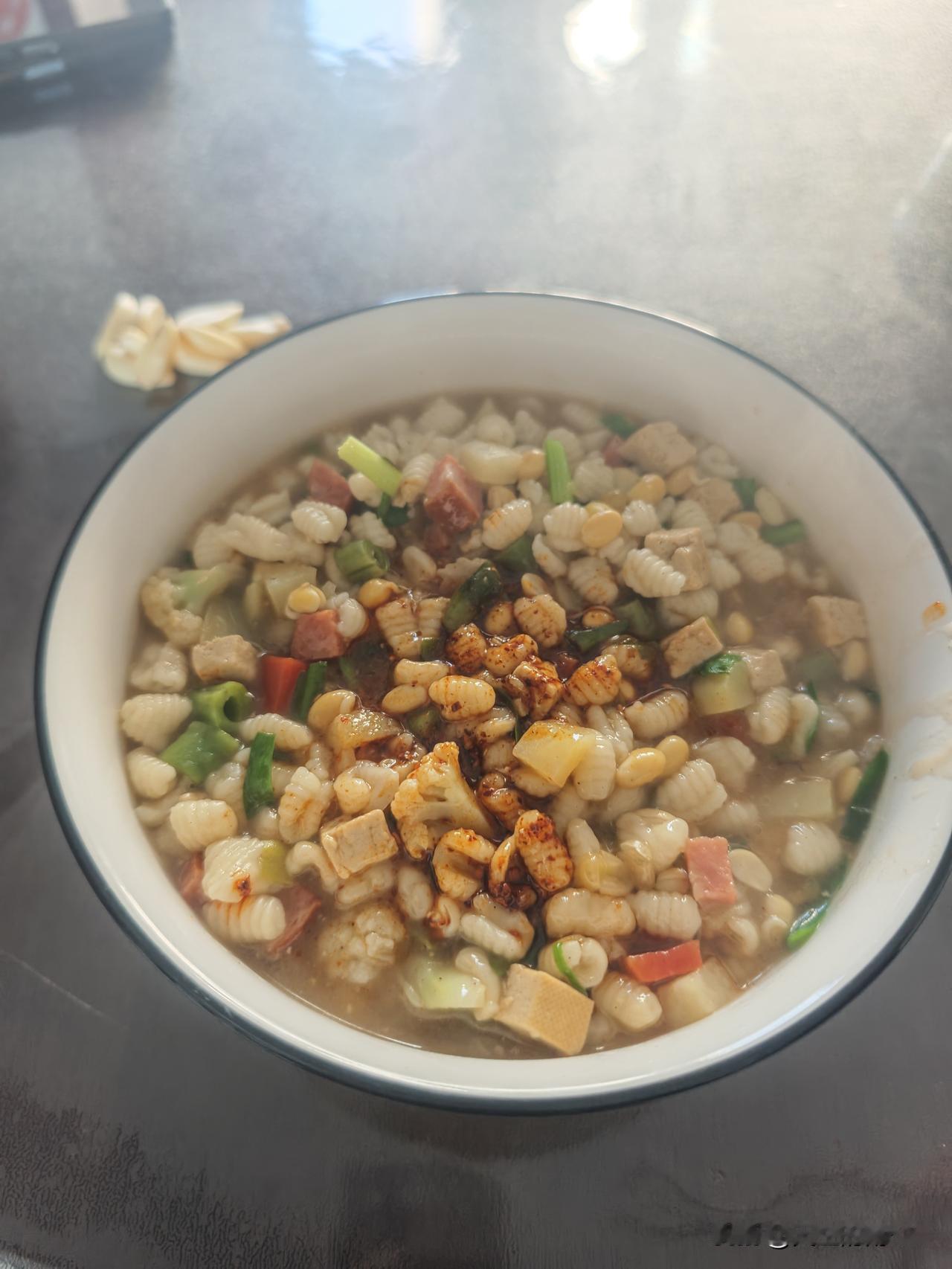 今天中午孩子回家了,他老娘做的午饭。是不是有点大杂烩的感觉[捂脸]