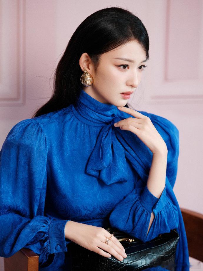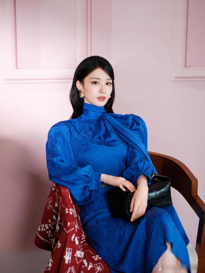 这么权威的脸真的是让人很难能够不喜欢的,蓝丝绒+珍珠 王楚然这一身高级感爆棚