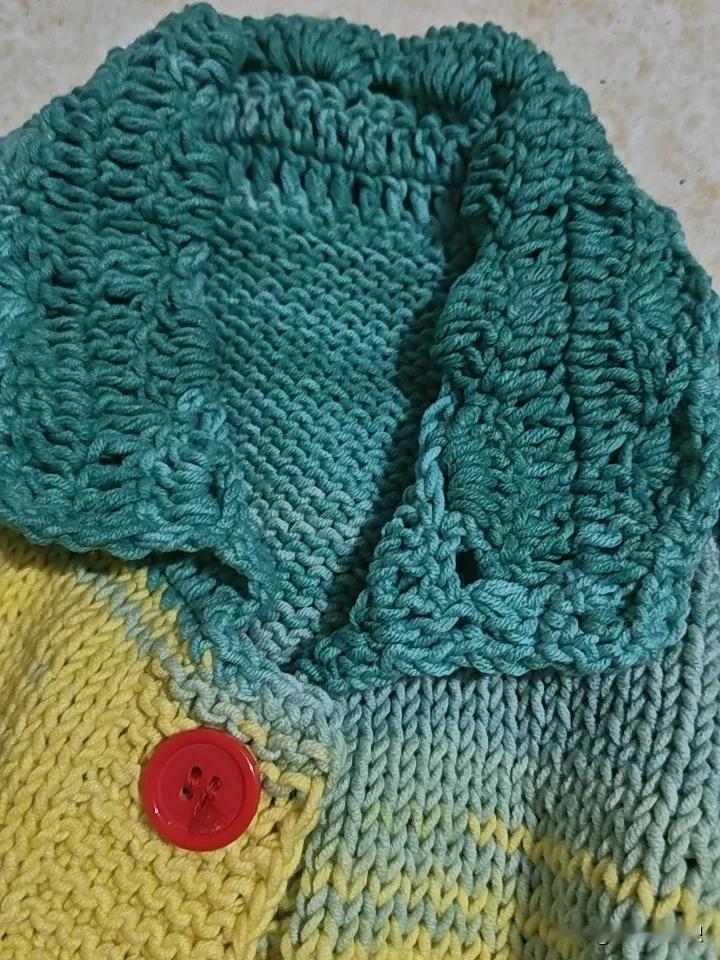 又完工一件儿童毛衣,用的纯棉雪宝线团,应该是很难买到吧,准备送给2岁女宝,人家能喜欢吗?