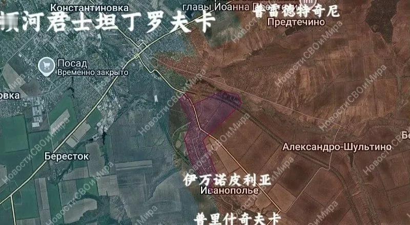 俄军南部集群部队占领了顿河康斯坦丁诺夫卡(顿河君士坦丁罗夫卡)东南的伊万诺皮利亚。不仅推进到了顿河康斯坦丁诺夫卡市区边缘,而且还保证了之前攻入顿河康斯坦丁诺夫卡市区的俄军南部集群部队的侧翼安全,进一步加强了攻城力量。
