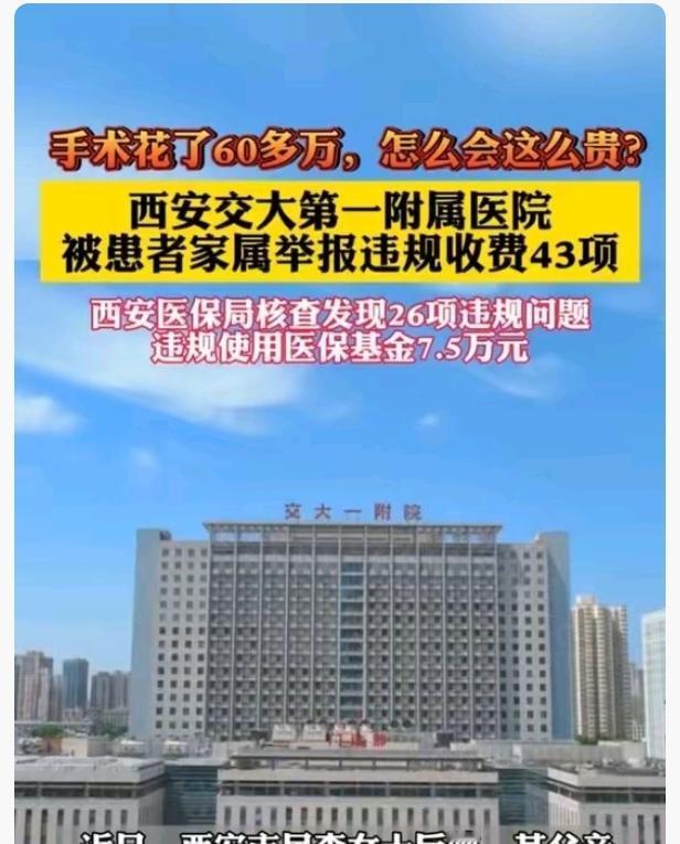 若不是李女士的细心, 若不是她不依不饶“较真到底”, 这起医疗违规事件,天价耗材、违规操作的猫腻也无从曝光。 李女士父亲在西安交大一附院花60多万做手术最后人财两空,换谁都会被悲痛万分,然后办理后事,可她硬是咬着牙,把那堆能堆成小山的病历、收费单翻了个底朝天,发现43个处不对劲的地方,换一般人真不会这么细致。 咱看医疗收费单,顶多扫一眼总金额,哪会细抠每项?李女士她把60多万的费用拆得明明白白,对着每项耗材的名称、数量、价格挨个核对。 这不看不知道,一看吓一跳,近6000块的纱布、5700块的缝合胶,这价格也太离谱了,还有医保报销的项目,她发现有些服务根本没给父亲做,却照样报了账,还查出7万5的医保基金被挪用。 不光对收费单,她还拿着病历一点点捋治疗流程。从手术步骤到用药记录,再到各项检查结果,她都对着父亲的治疗时间线核对,硬是找出了好几处前后矛盾的地方。最离谱的是那个28万的心脏瓣膜,这么贵的东西,植入手术居然没让家属签字同意。 为了把疑点坐实,李女士还特意去查了心脏手术的常规规范和医保报销政策。对照下来才发现,医院不光用了超出治疗需求的高价耗材,还把医保目录外的产品违规纳入报销,收费标准也比公示的高不少 不得不说,李女士这股较真劲儿太让人佩服了。要是换成别人,可能觉得维权难就忍了,可她偏要“死磕”,不光为父亲讨回了公道,还帮所有普通人守住了医保基金的底线。也让那些想把患者当“提款机”的医院不敢再乱搞!