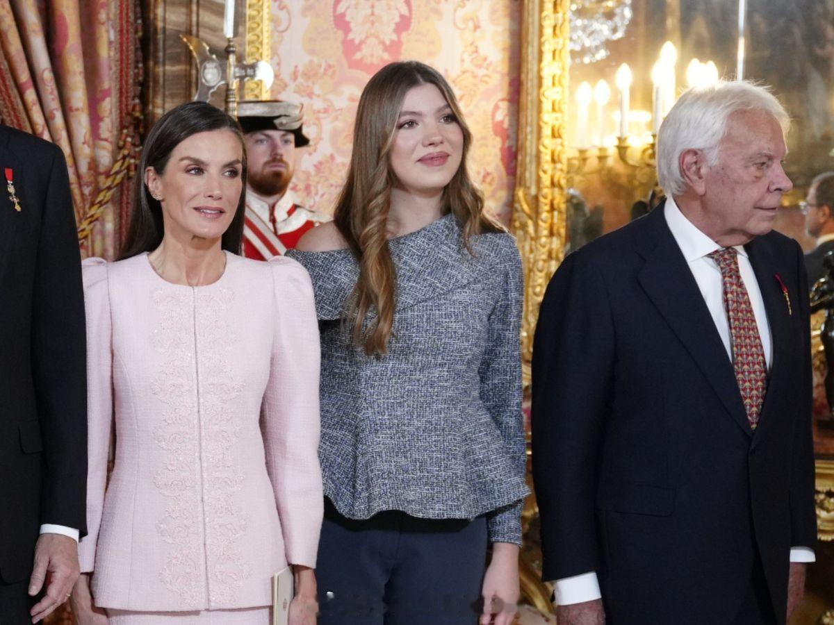 索菲亚公主今日穿搭~粗花呢斜肩套装是新的,来自塞维利亚的品牌Vogana,莱后和诺拉都穿过她家的衣服,菲菲是首次解锁,还挺适合她的。搭配的平底鞋是老演员了,姐姐ENM毕业、出席公主奖都穿过,来自妈妈的真爱品牌Magrit。顺便感叹下,离家近也是有好处的