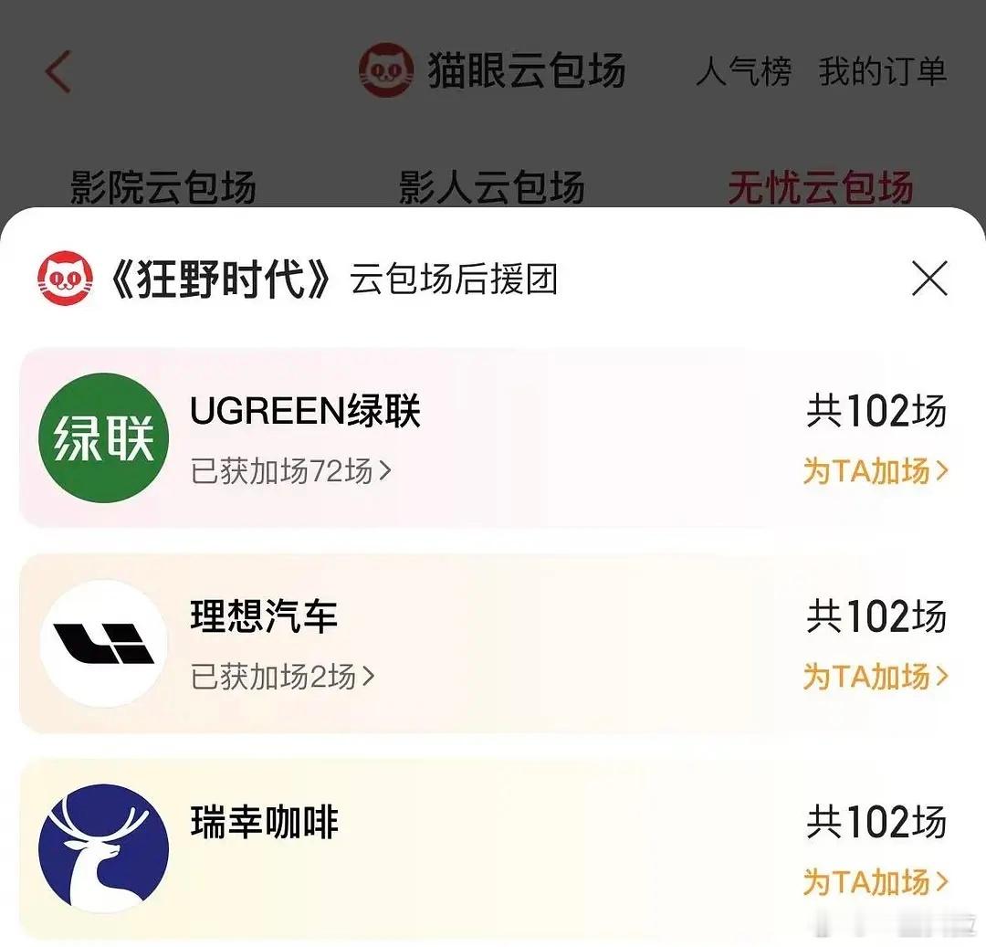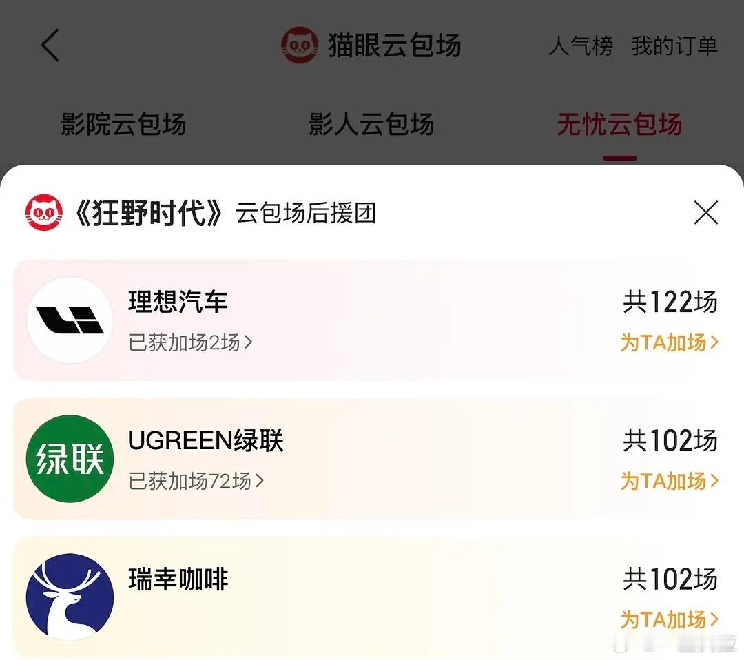 易烊千玺的品牌方打起来了四字新电影云包场上理想汽车本来包了100场位居榜首,结果绿联跑上来抢了榜一的位置,理想汽车又怒包20场回到榜首啊啊啊啊啊啊你们不要再打了啊啊啊啊啊