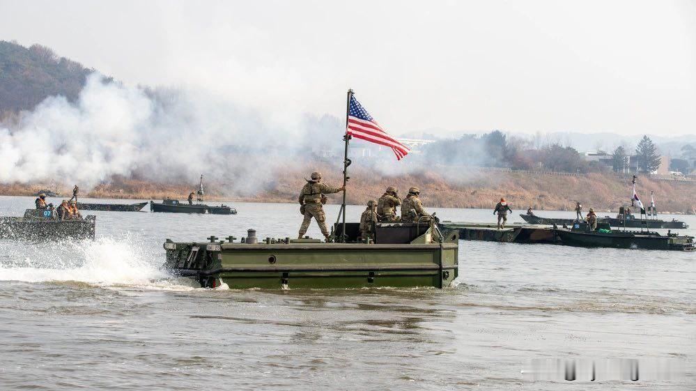 🇺🇸🇰🇷11月20日,美国陆军第2步兵师第11工兵旅第814桥梁连的官兵与韩国陆军第7步兵师的官兵在韩国南汉江沿岸进行了渡河演习。