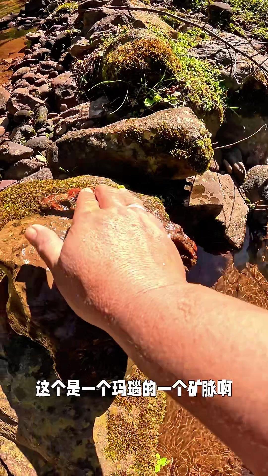 丽江河谷捞石花菜,捡到“鸿”玛瑙奇石!今天本来是去河谷捞石花菜的,没想到有意外收获。沿着河边走的时候,突然看到一块特别显眼的石头,走近一看居然是玛瑙!这玛瑙还很冰很透,虽然裂纹不少,但整体看起来很特别,就像天然形成的摆件。 除了这块玛瑙,我还发现了一条玛瑙矿脉,看来山上应该也有。白色的石头上也裹着一层玛瑙,第一次在河里捡到这么大块的,真是幸运。 打算把这块玛瑙带回去,洗干净后配个底座,希望能成为家里的“鸿运当头”。今天虽然主要是捞石花菜,但这意外的奇石让整个过程都变得超有意义,大家觉得这个名字怎么样?