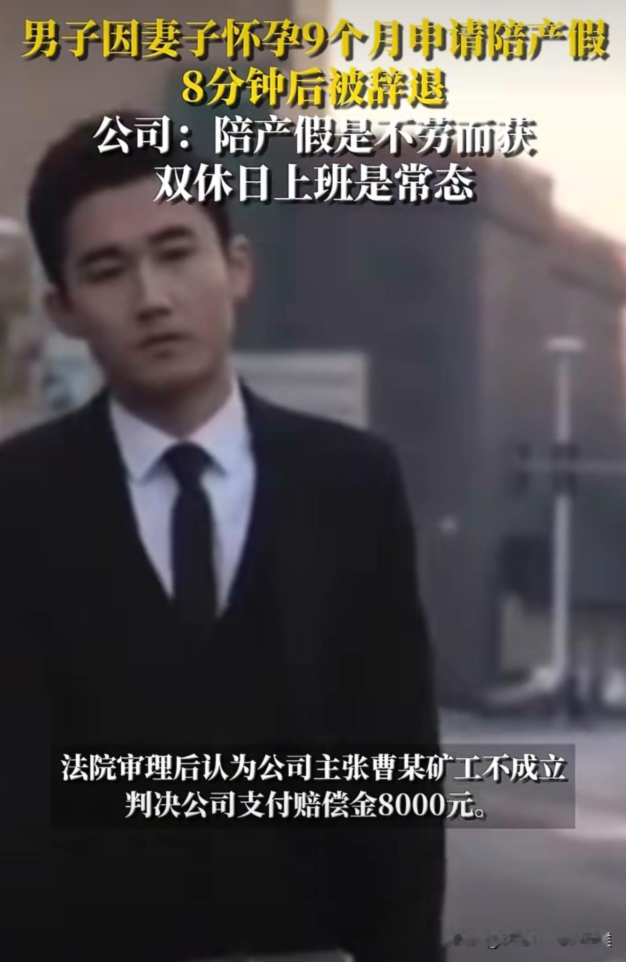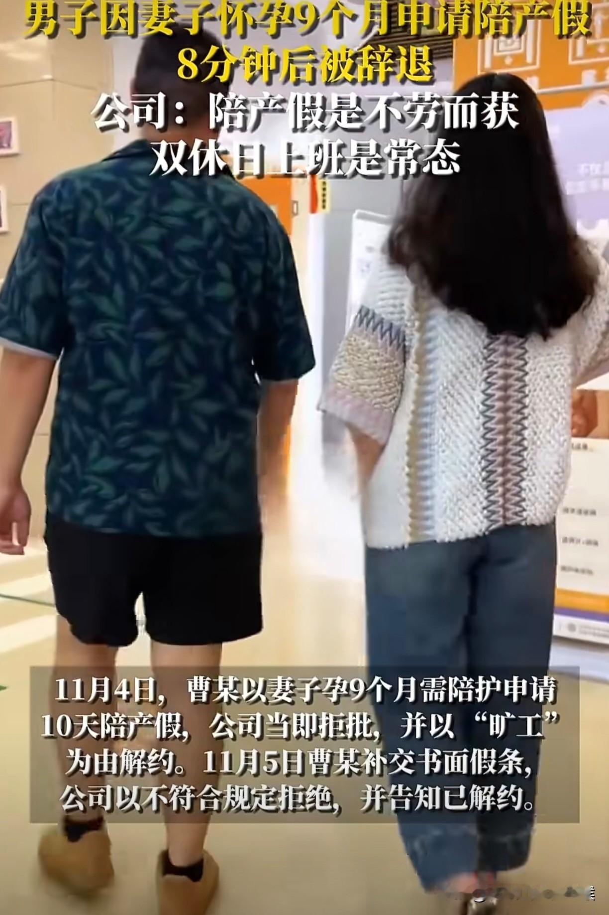 实在太离谱,这样的公司真是没有人情味。妻子临产,男子仅仅请了8分钟的陪产假就被开除。公司还辩称双休日员工自觉来工作是正常的,男子请产假是算计,是为了不劳而获。 请产假不是正常的吗?这应该是法定的吧,难道让怀孕的妻子自己去医院待产?这公司的领导真是个大才。产假 社会新闻