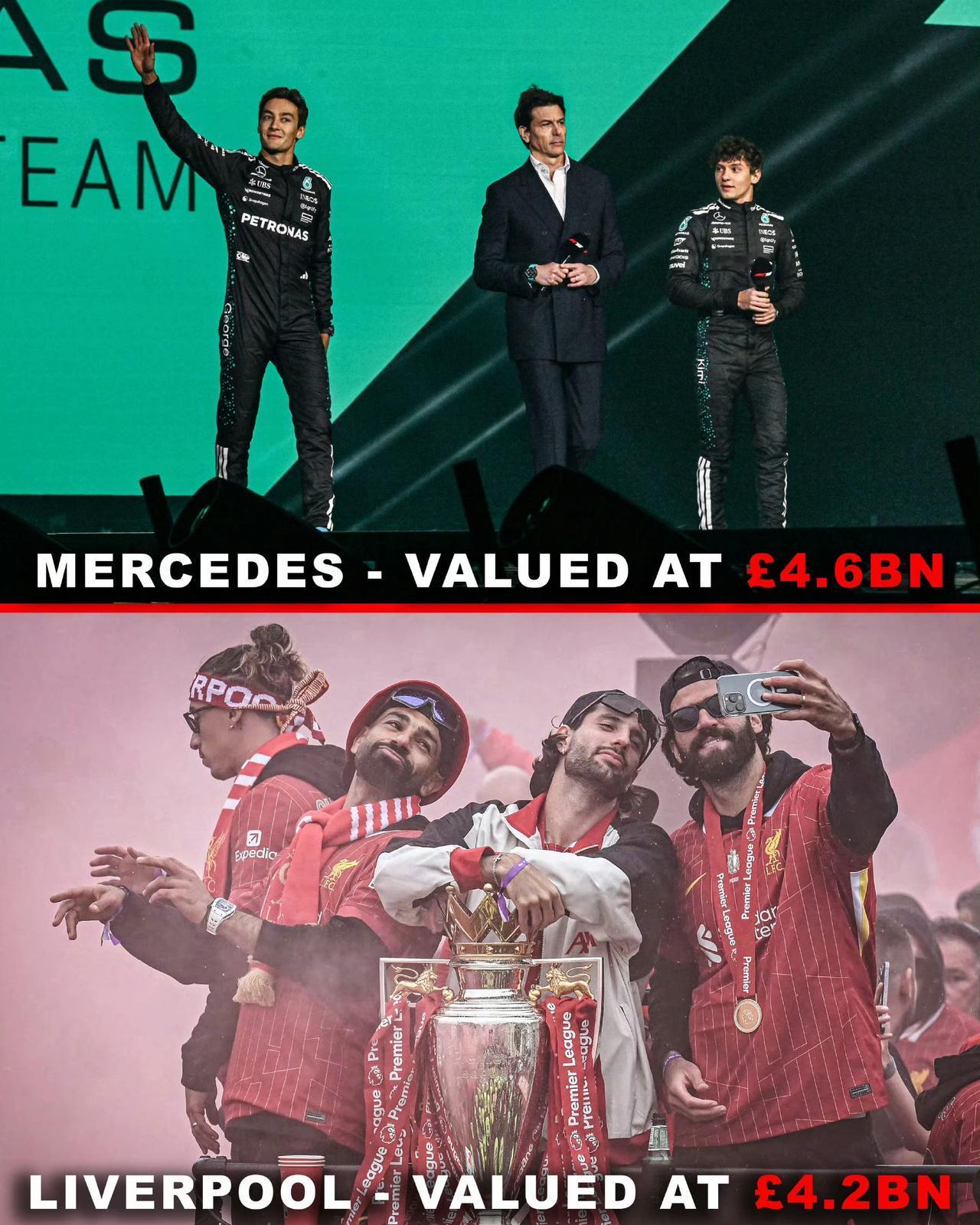 想不到F1梅奔车队的市值超过英超利物浦球队的市值。 F1的确比英超疯狂,围场激情,讲究胆大心细。