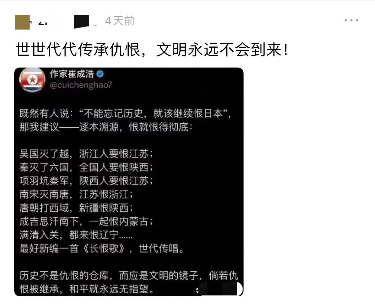 承认也好、不承认也罢,最近突然冒出来的“反战派”不但懂中国历史,还读过孙子兵法,上来就是三板斧:胡适和民族主义、仇恨带不来文明、民众利益才重要,翻译过来就是:不应该仇恨、不应该打架、打架会让个人利益受损…… 如果当年我们的战士都这么想,现在别说腰杆直不直,饭都够呛能吃饱,“嘴上都是道理心里都是自己”说的就是这群人。这还没怎么样就有人急着想从内部削弱战斗力,平日里藏得挺深,这时候出来讲大道理,可惜他们低估了中国人的家国情怀。