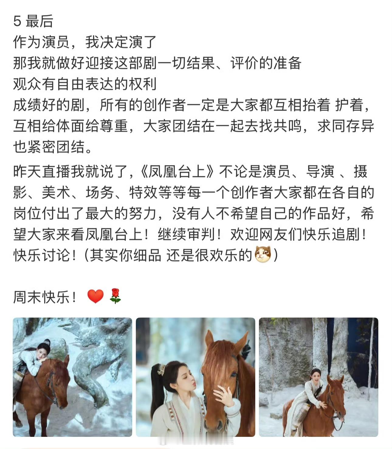 彭小苒就凌苍苍一角引发的讨论作出回应。她表示,演员的创作空间基于既定框架,自己无法决定剧情走向与角色设定,所能做的最大努力,便是通过细致的表演在单场戏中为人物弧光增添色彩,完善呈现。