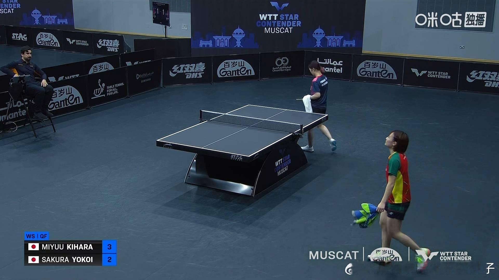 木原美悠3比2横井咲樱(-3,-7,8,11,9)晋级2025WTT马斯喀特球星挑战赛女单半决赛下一轮将对战大藤沙月VS佐藤瞳的胜者