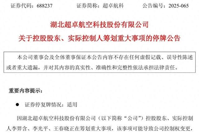 控制权或变更!688237,筹划重大事项,24日起停牌!