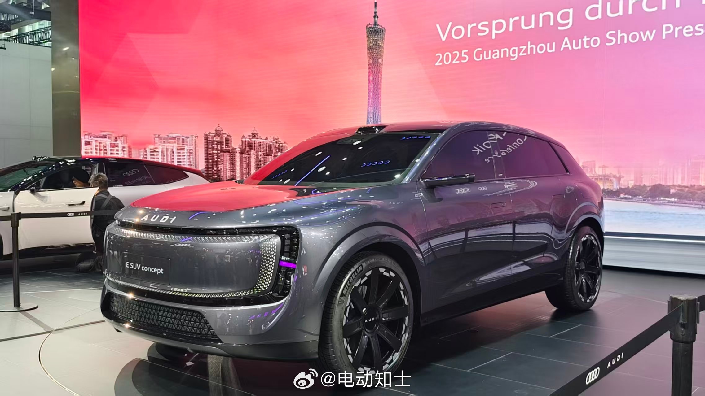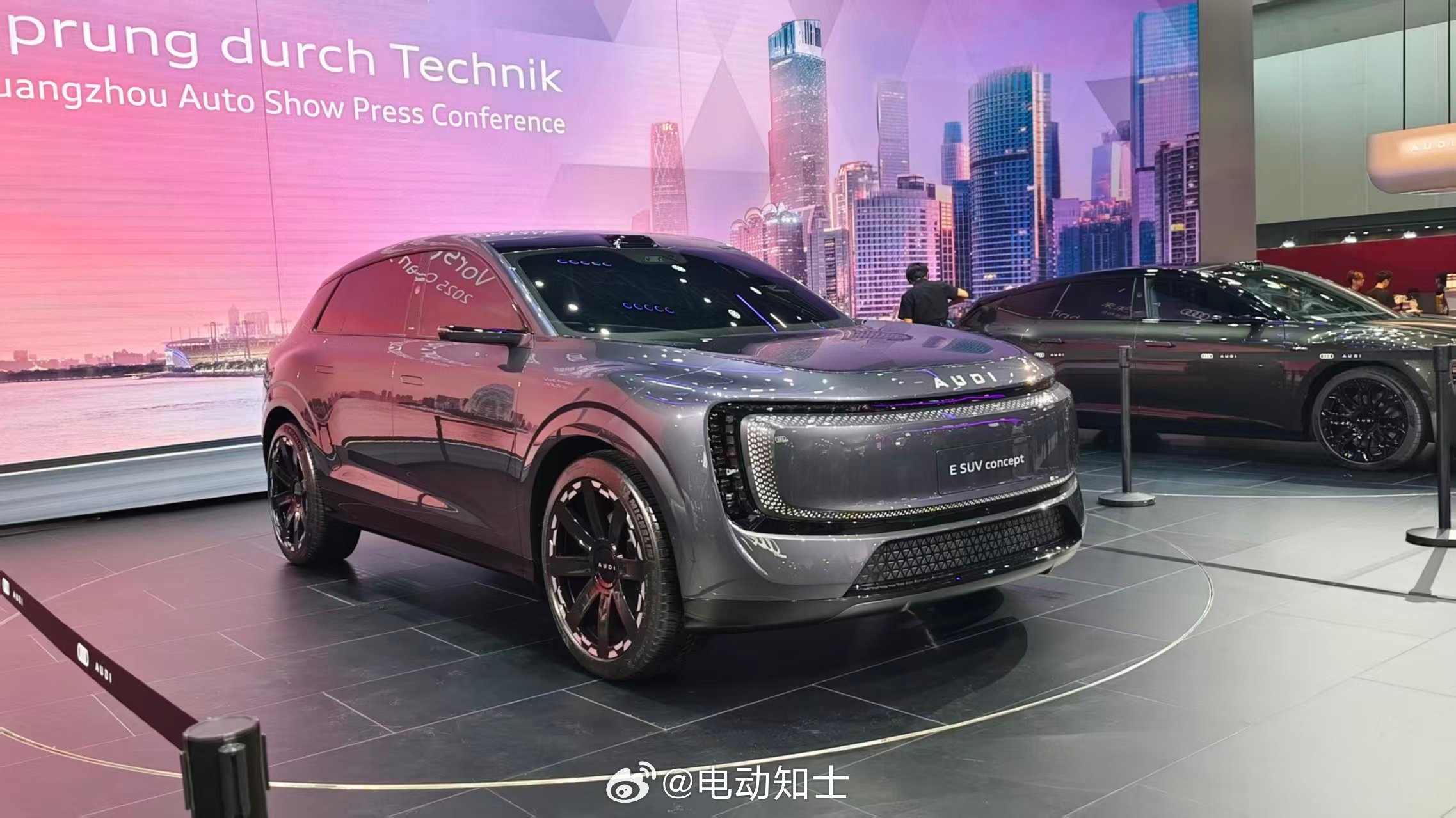 上汽奥迪这次在广州车展挺有看头!先把重点列前面,继E5之后,现场的尾声奥迪首秀了另一台E系列新车-AUDI E SUV概念车,量产版据说2026年会上,现在只能现场远观拍拍照片,样子比较未来感,侧面看也很饱满。