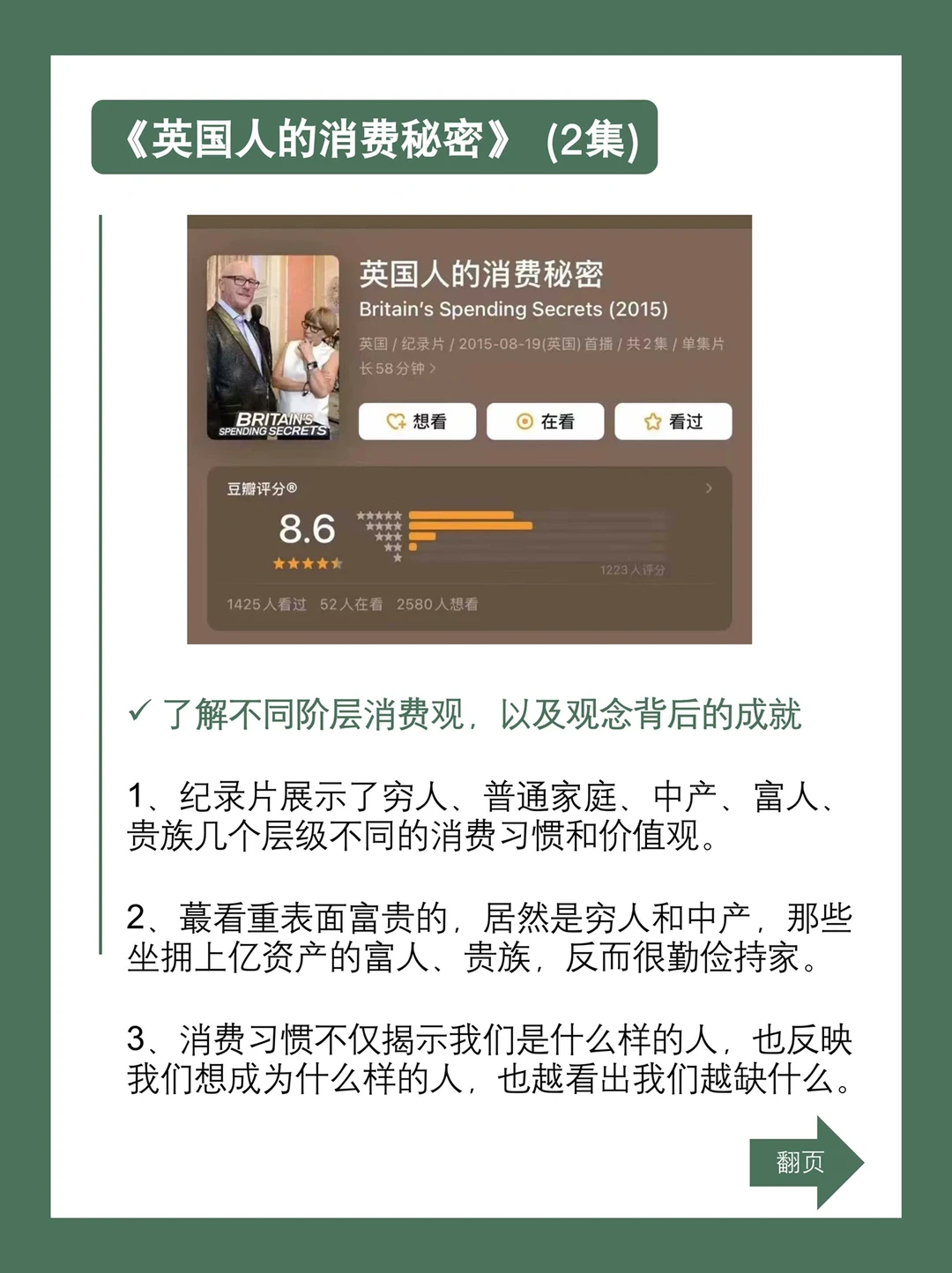 这部纪录片展示了不同阶层,不同的消费习惯和消费观,有穷人,普通家庭,中产,富人,贵族。不同阶层不同消费习惯背后,也隐藏了不同的结果。