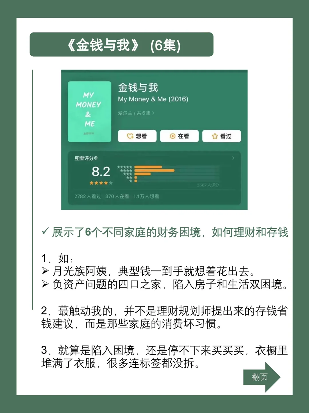这部纪录片展示了6个不同家庭的财务困境,以及理财规划师针对不同家庭,给出的相应理财规划。