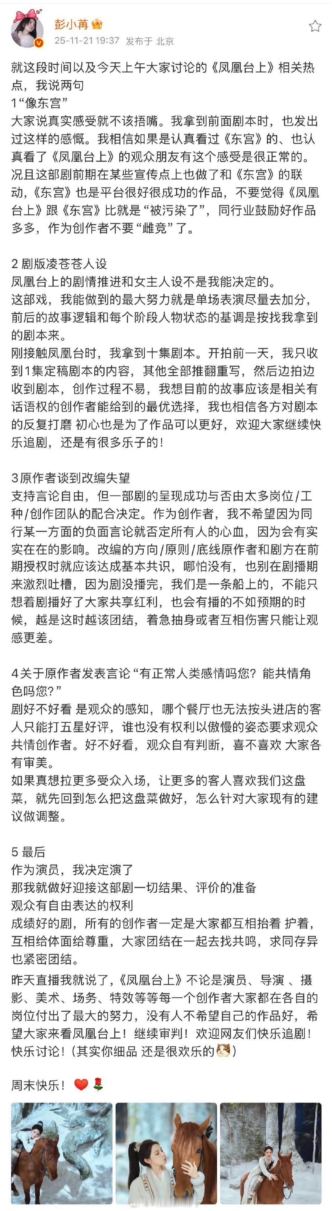 彭小苒和《凤凰台上》原著作者俩人好像吵起来了??第一次见剧播期间原著作者这么能说