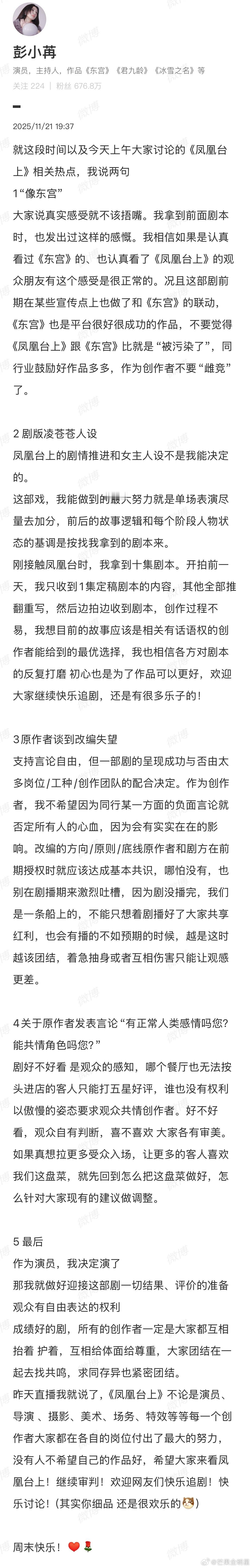 彭小苒怎么和原著作者撕起来了是因为角色人设剧版改编的问题吗,看不懂了