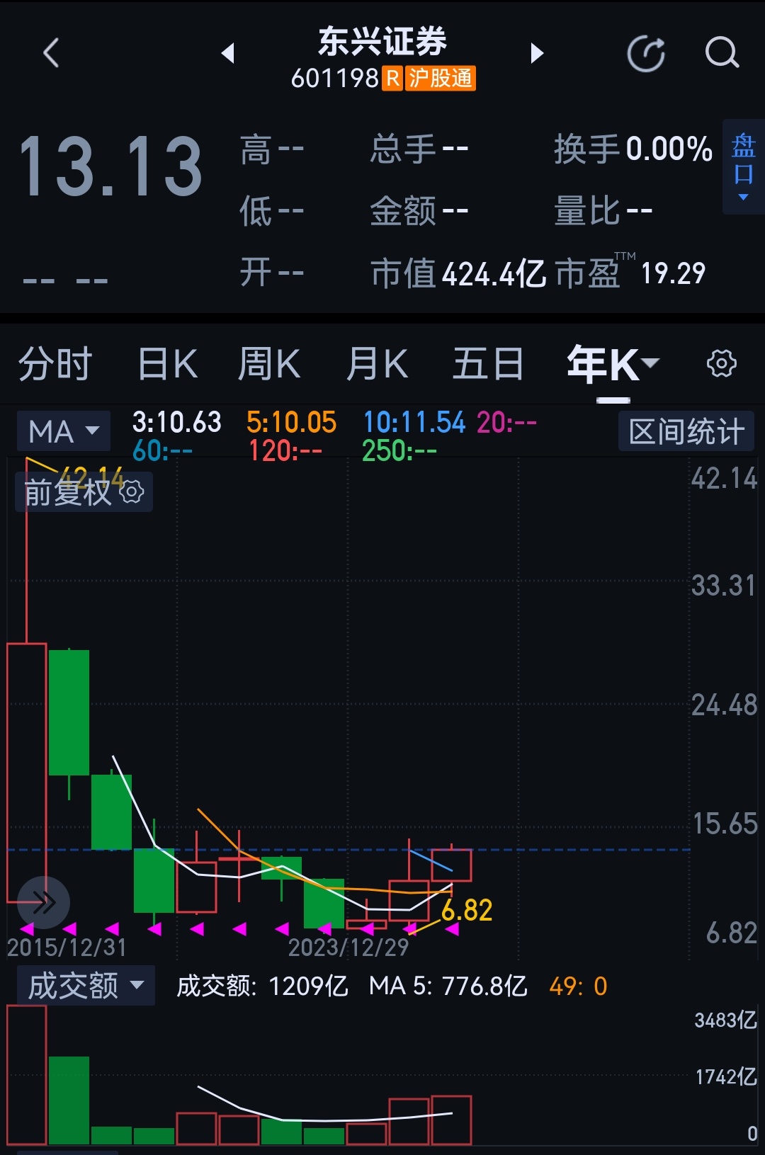 东兴,两年,说大数,股价从8元到13元,涨幅60%的空间内,换手666%,把人洗