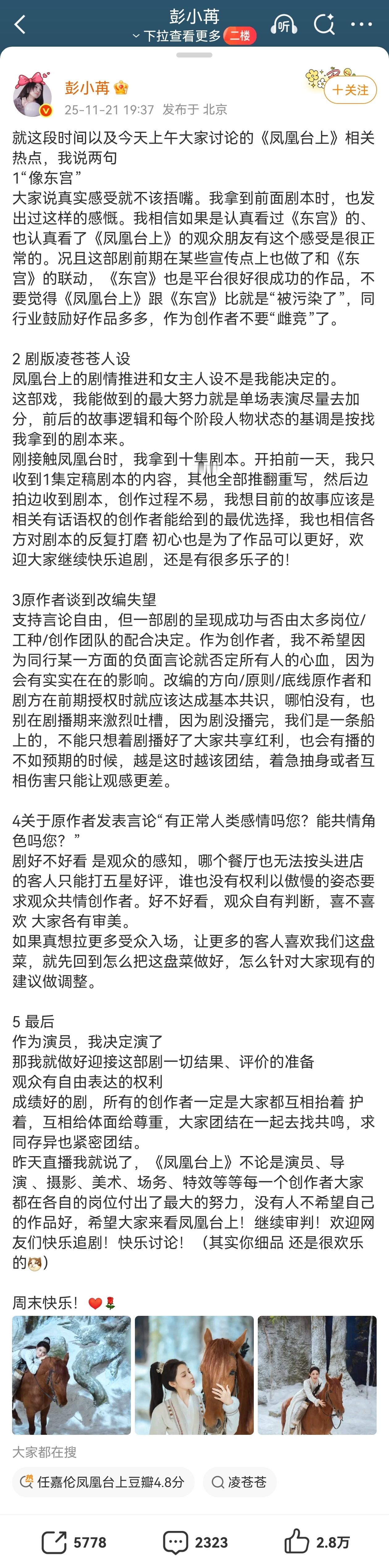 彭小苒这每一条都是在硬刚凤凰台上作者啊?好有种一女的