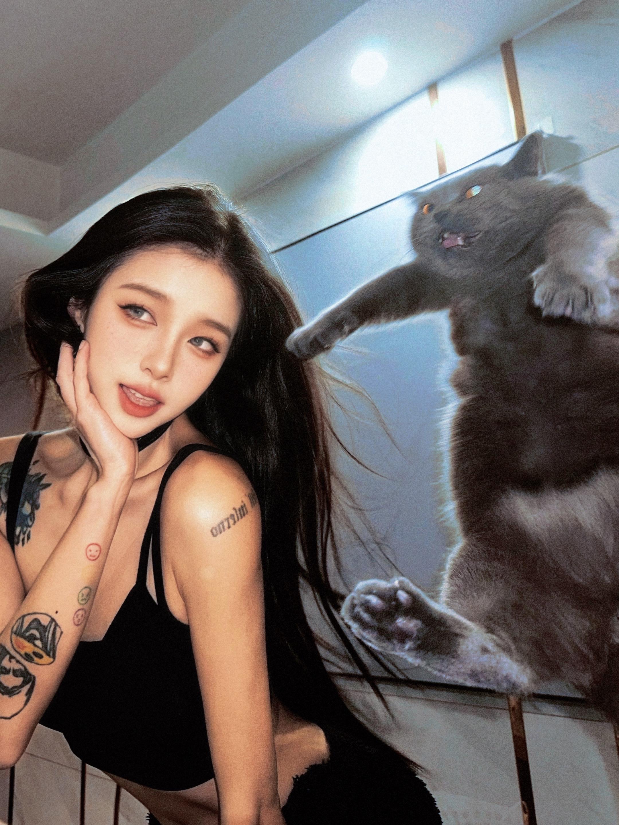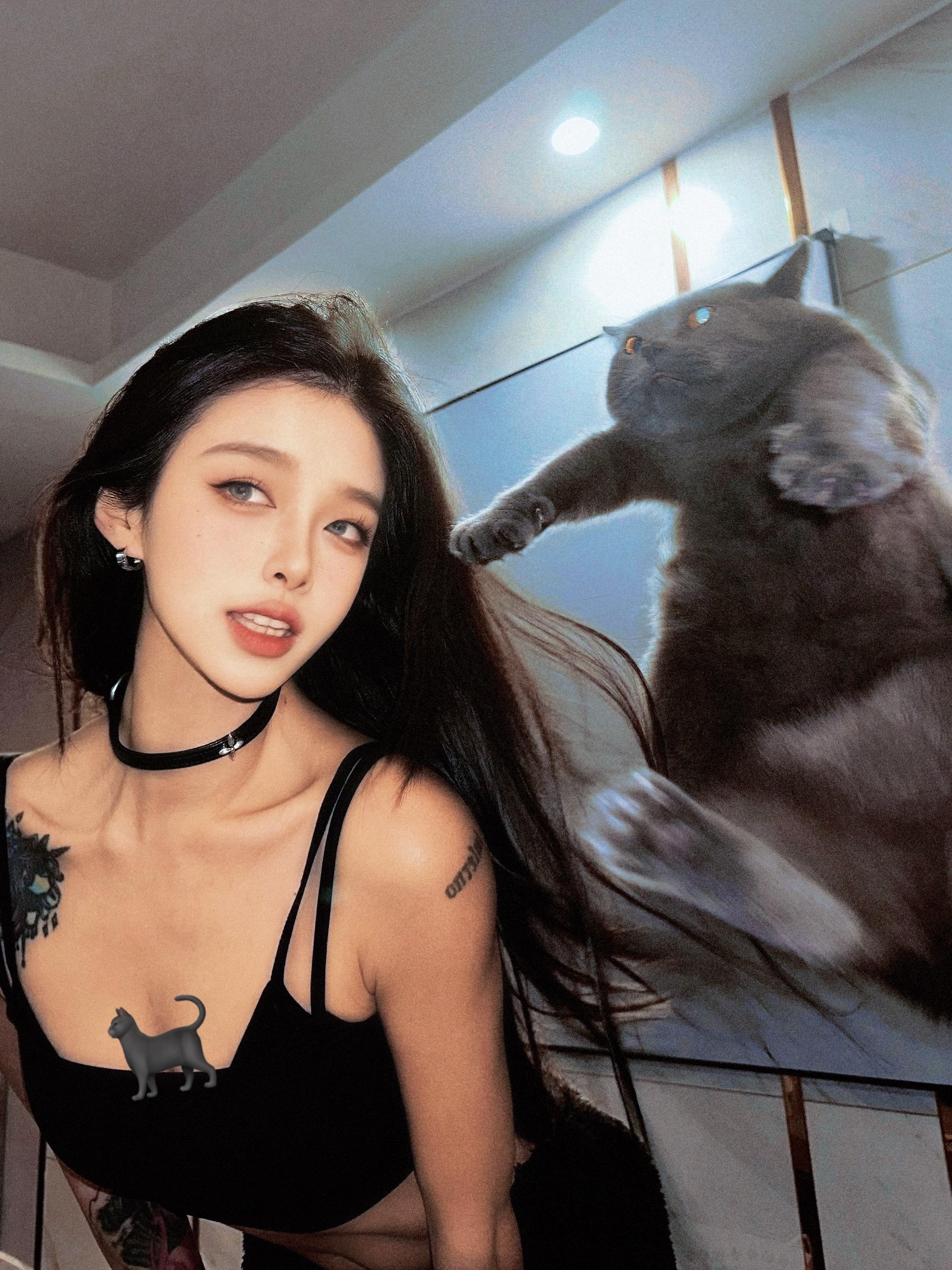 不是ai 和猫猫大人合照3则。