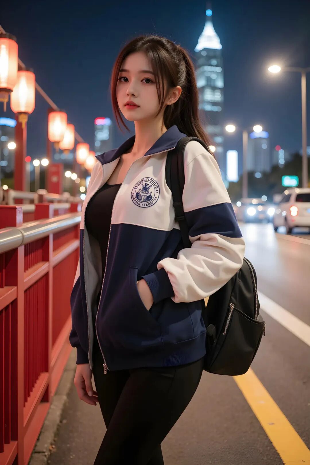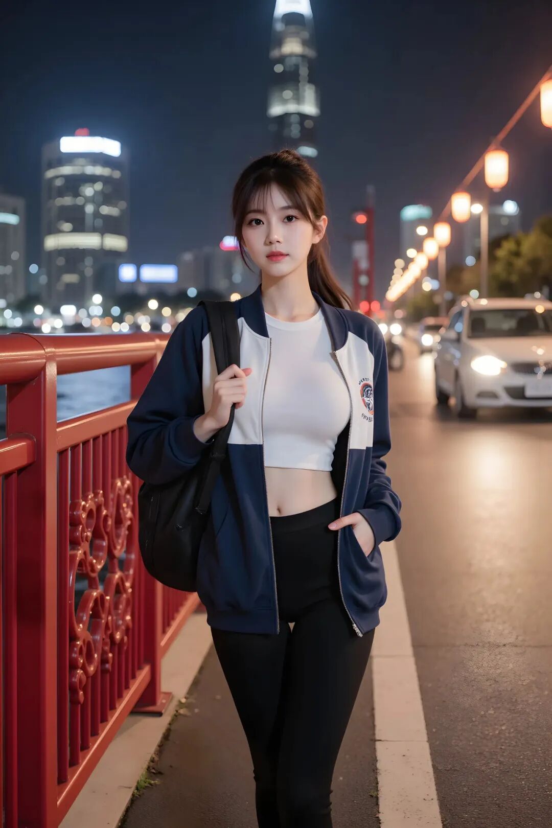 都市夜生活,时尚女孩在街头漫步,享受夜晚的自由与美丽