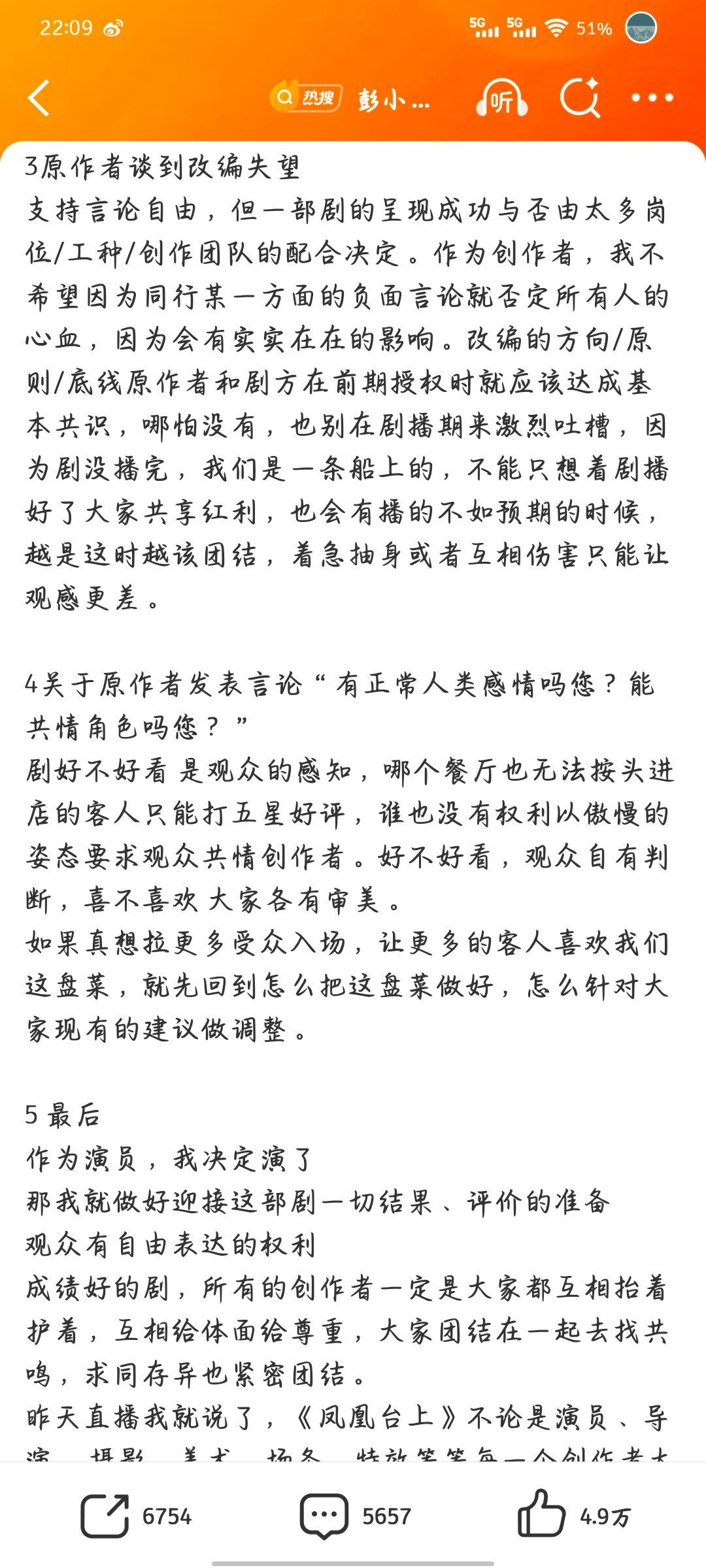 针对人设、改编分歧等争议,彭小苒长文回应:坚守演员本分用心演绎,正视所有讨论,盼