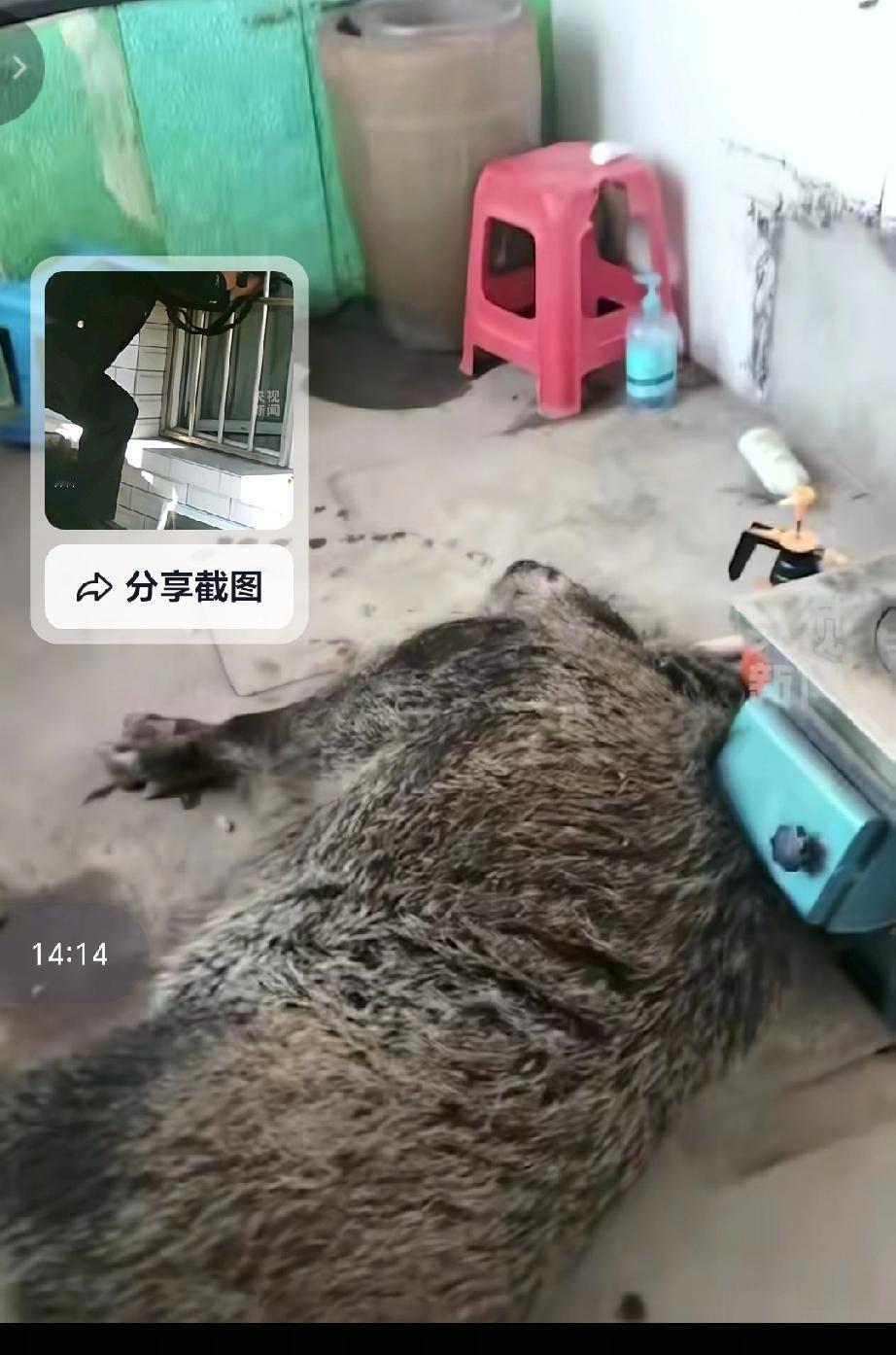 近日,一只重达400斤的野猪撞入辽宁铁岭一村民的住宅,追逐袭击村民撞倒院子里的自行车。 村民发现后慌忙躲避,同时打电话报警,警察接到群众求助后,携带枪支赶赴现场,最终将野猪处置。(来源于@央视新闻)