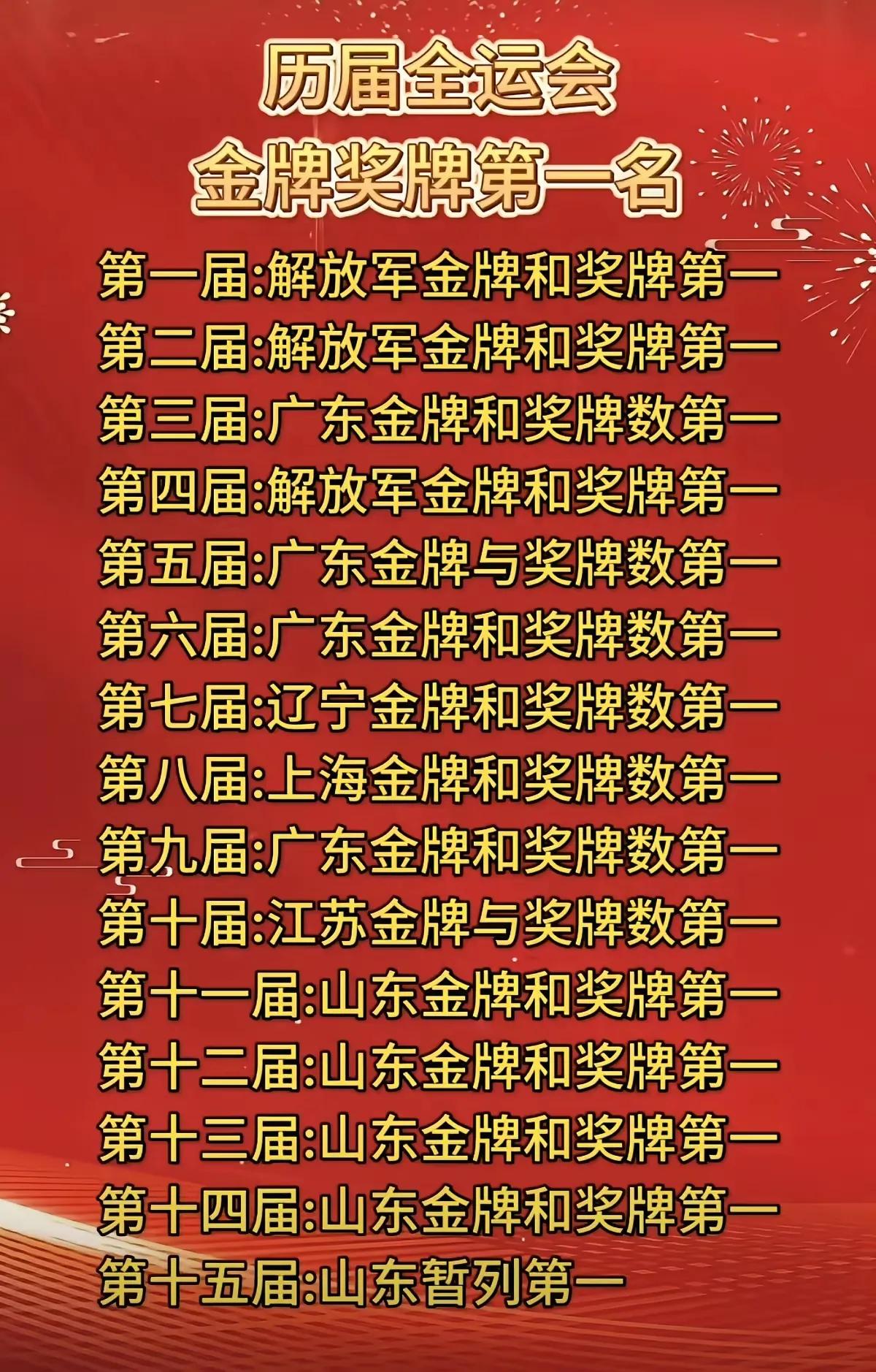 十五届全运会闭幕[烟花][烟花] 祝贺山东队夺冠🌹🌹👏👏 更是全运会五连冠🧨🧨🎉🎉 全运会各省(市)金牌榜单: