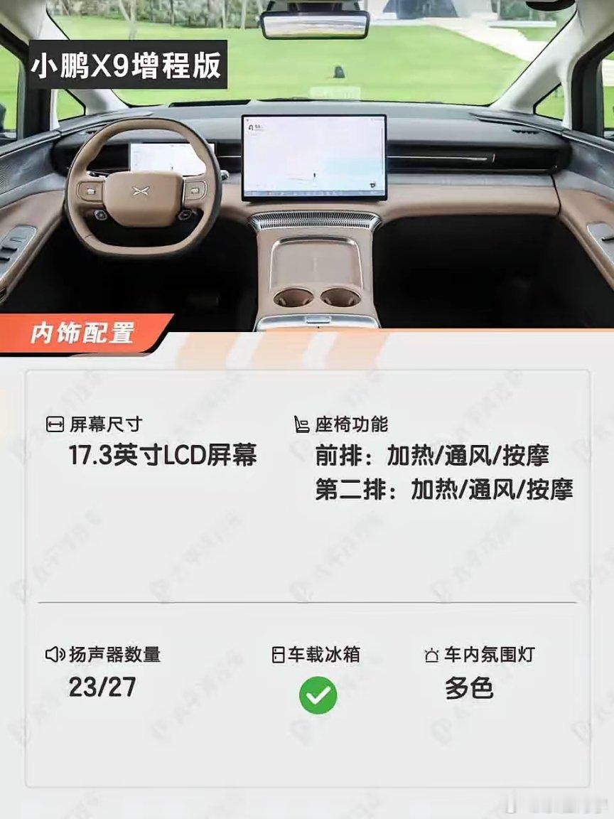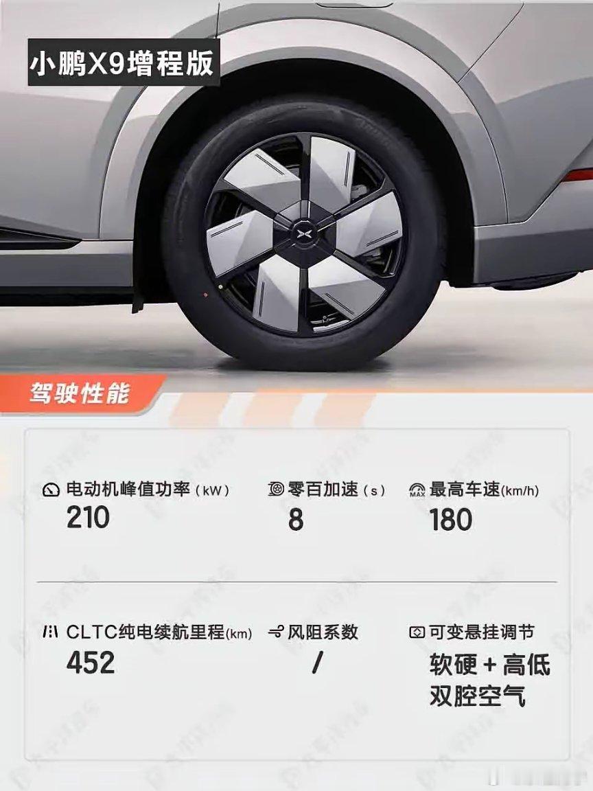 一文看懂刚上市的小鹏X9增程版!30.98万起的价格真的杀疯了~共推2款车型,售价30.98-32.98万元车长超5米3,比纯电版还长了23cm,轴距依旧是3米16,空间“无敌”CLTC纯电452km,综合续航超1600km(哪个增程式车型能有这个成绩?)800V高压平台+5C超充电池,充电10分钟补能313km3颗图灵AI芯片,2250TOPS算力,这“大脑”配置,在MPV里算是“学霸”级了吧?标配双腔空悬+CDC+后轮转向,5.4米转弯半径,开这大家伙比你家SUV还灵活!30.98-32.98万的价格,给了你纯电的体验,增程的安心,还有小鹏的智能buff不知道对手们压力大不大?你们觉得X9增程版这波能成“爆款MPV”吗?