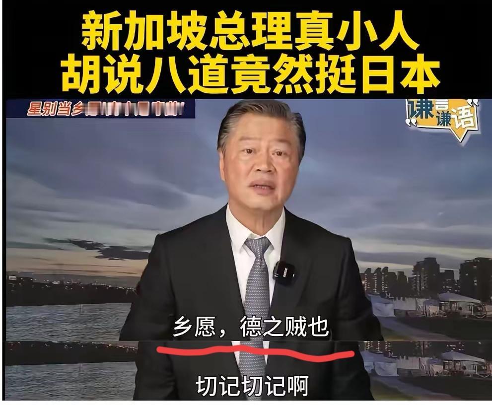 赖岳谦教授批评黄循财时,引用了孔子两千多年前的话——“乡愿,德之贼也”!简单来讲,就是这位总理扮演“和事佬”角色,看似人缘颇佳,实则在破坏规矩! 您或许会疑惑,“乡愿”究竟是什么意思?孔子早有阐释,指的是没有是非观念的老好人。(杨伯峻将其翻译为“没真是非的好好先生”,钱穆的表述更为犀利:“一乡都不得罪的,是品德败类”)在我们的生活中,就如同小区里调解邻里纠纷的人:张家称李家霸占车位,李家指责张家污蔑,他两边劝说“都冷静点”“各退一步”,结果两个月后双方吵得更凶——问题并未解决,他反倒落得个“脾气好”的名声。 黄循财近来在中日之间的表现,就有几分这样的意味。日本排放核污水,他夸赞对方“为地区安全做贡献”;中国抗议核污水带来的影响,他又表示“重视中方关切”“愿沟通”。听起来似乎滴水不漏,可关键问题呢?在应当明确反对核污水危害时不够强硬,在应当支持中国合理诉求时却无声无息。 有人说外交需要平衡,可外交并非和稀泥!我们普通人都明白:朋友被欺负,你劝“他也不容易”,远不如说“这事儿他过分了”有效。在国际上同样如此,模棱两可的“老好人”,只会让蛮横的国家更加嚣张——反正闹大了有人帮忙收场。 新加坡是东盟的核心,地理位置十分重要。倘若总是效仿这种“乡愿”做派,小国在大国博弈中极易成为棋子。赖教授这番批评,针对的并非个人,而是这种毫无原则的处事方式。 您认为,在国际舞台上充当“和事佬”,是明智之举还是失职表现?欢迎在评论区交流探讨! (信息综合自央视新闻、环球时报对中日关系及新加坡外交立场的报道)