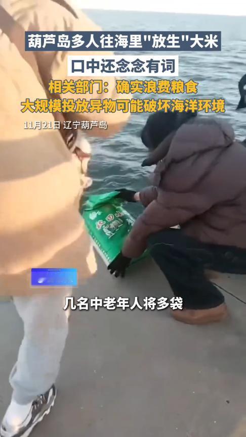 “离了个大谱!”11月20日,辽宁葫芦岛,几名老人齐聚一堂,将多袋大米搬到码头,随后一边念念有词,一边将大米倾倒入海中,将其“放生”!然而,老人们的这一行为,不仅浪费粮食,还会对海洋造成污染。网友:就应该把他们的退休金扣掉! 生活中有很多拥有“大爱”的人,他们心怀慈悲,见不得杀生,会购买鸡鸭鱼等动物带到野外放生,虽然这一出发点是好的,但放生前一定要做好准备工作,不能盲目的放生。 当天上午,海边冷风呼啸,温度并不是很高,可过了一会儿,几名中老年人聚集在一起,开始往海边搬什么东西。 等到准备得差不多了后,几人便开始了“放生”行动。原来,袋子里装的都是大米,几人在同伴的“祈福”声中,逐渐将大米倒入海中,随后就离开了。 这一行为可把周围的路人搞懵了,往海里面倒大米?真不知道他们是怎么想出来的,真是吃饱了撑的! 当地有关部门也做出了回应,老人们的行为确实不建议推广,向大海投放大量异物,可能会导致原有的生态系统崩溃,同时这也是在浪费粮食。 网友看后表示,这帮老人真是太闲了,退休了要是没事干的话,不如跑到大街上打扫打扫卫生,不要干这种损人不利己的事! 信息来源:《葫芦岛多人往海里放生大米,口中还念念有词,当地相关部门:确实浪费粮食,大规模投放异物可能破坏环境》封面新闻
