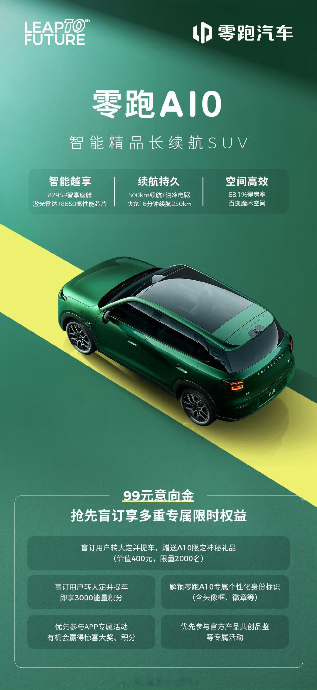 零跑这是要把性价比贯彻到底。十万以内的小车,都要配上激光雷达了。零跑A10是零跑全新A系列的首款车型,定位小型纯电SUV,现在透露的信息有:顶配车型价格控制在10万元以内,配备激光雷达+高通8650智驾芯片,支持“车位到车位”全场景智能辅助驾驶(如高速领航、智能泊车),这是打破同级智能天花板了。CLTC续航达500km,30%-80%充电仅需16分钟,补能250km续航,解决里程焦虑。车身长超4.2米、轴距超2.6米,空间利用率同级领先,后排舒适性媲美B级车。不过这款车要面临的对手可不容小觑,瞄准7-10万元市场,这一块市场基本被吉利星愿、宏光MINIEV、海鸥等几款车吃干抹净了,坏处是市场一片红海,好处是真能杀出重围,那就是无定语销冠的存在,毕竟大多数人买车,就这个预算。零跑这个性价比选手一来,那或许真的有好戏看了。