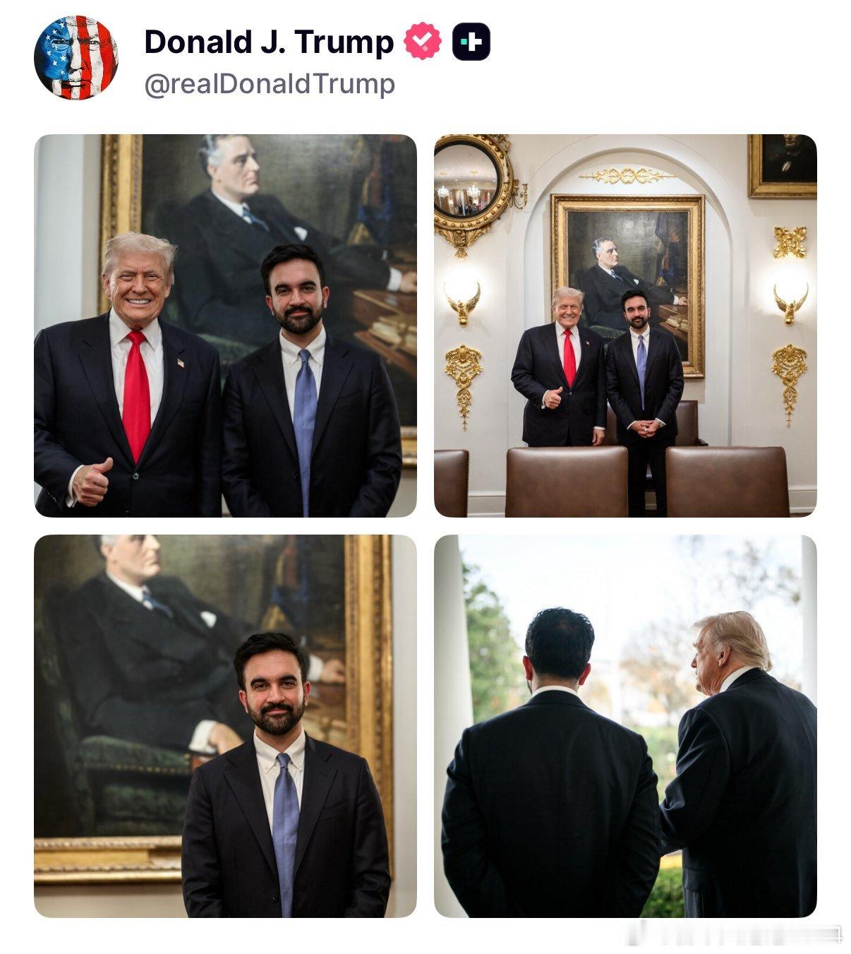 川普总统与纽约当选市长曼达尼的会面效果不错,川普总统随后贴出了两人的会面合影。我个人感觉,对于这个34岁的菜鸟,川普总统是有机会影响他的部分决策的。