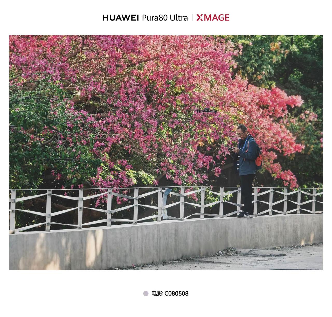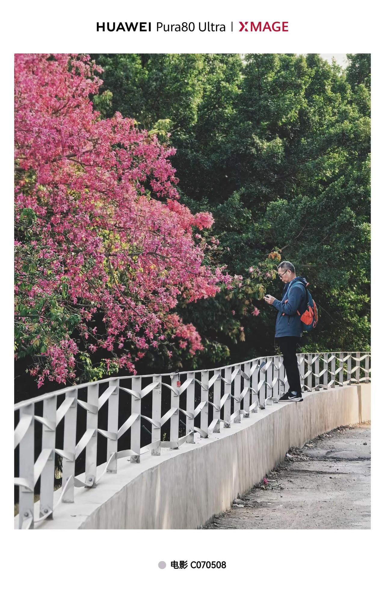 Pura80ultra的模特是木棉花下飞。Pura80ultra的模特是木棉花下飞无人机的大爷,观澜河的木棉花太美了,大爷都在飞无人机。华为Putra80ultra XMAGE 影像 电影 个性色卡直出片